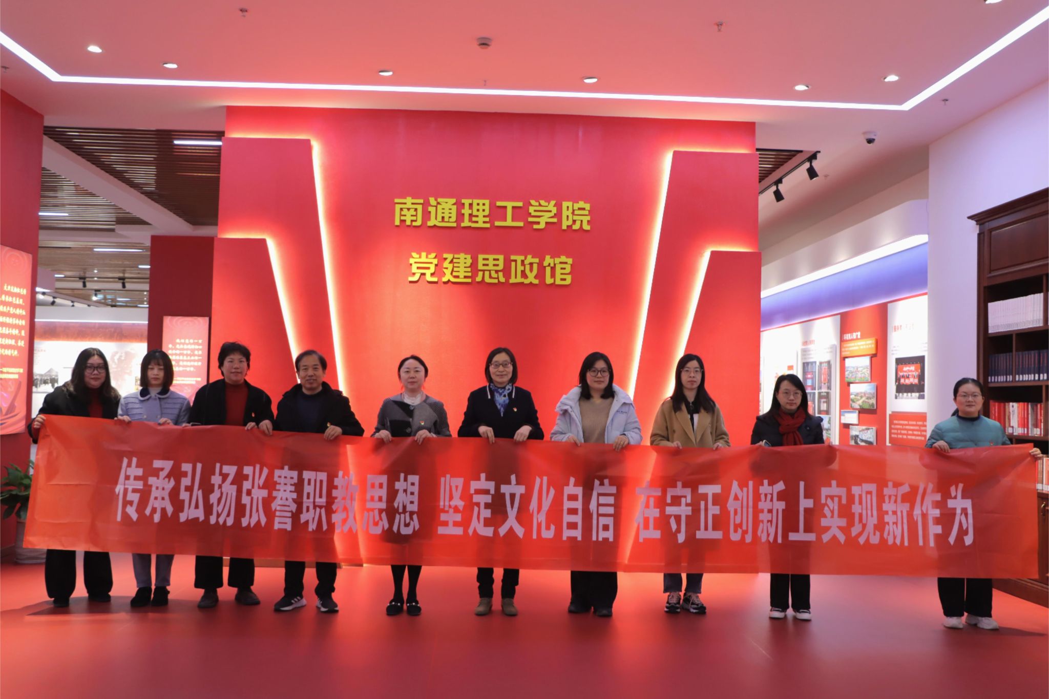 在党建思政馆,全馆分为璀璨的华夏文明、光荣的奋斗历程和生动的理工实践三个展区。南通理工学院在践行“为党育人、为国育才”初心使命过程中,坚持三全育人,总结的“五聚六重八度”的思政实践工作思路给支部全体成员留下了深刻的印象。