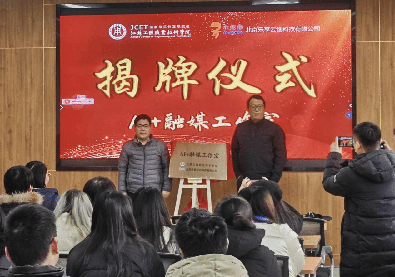 王亚鹏与王志共同为 “AI + 融媒工作室” 揭牌,标志着校企合作项目正式落地。
