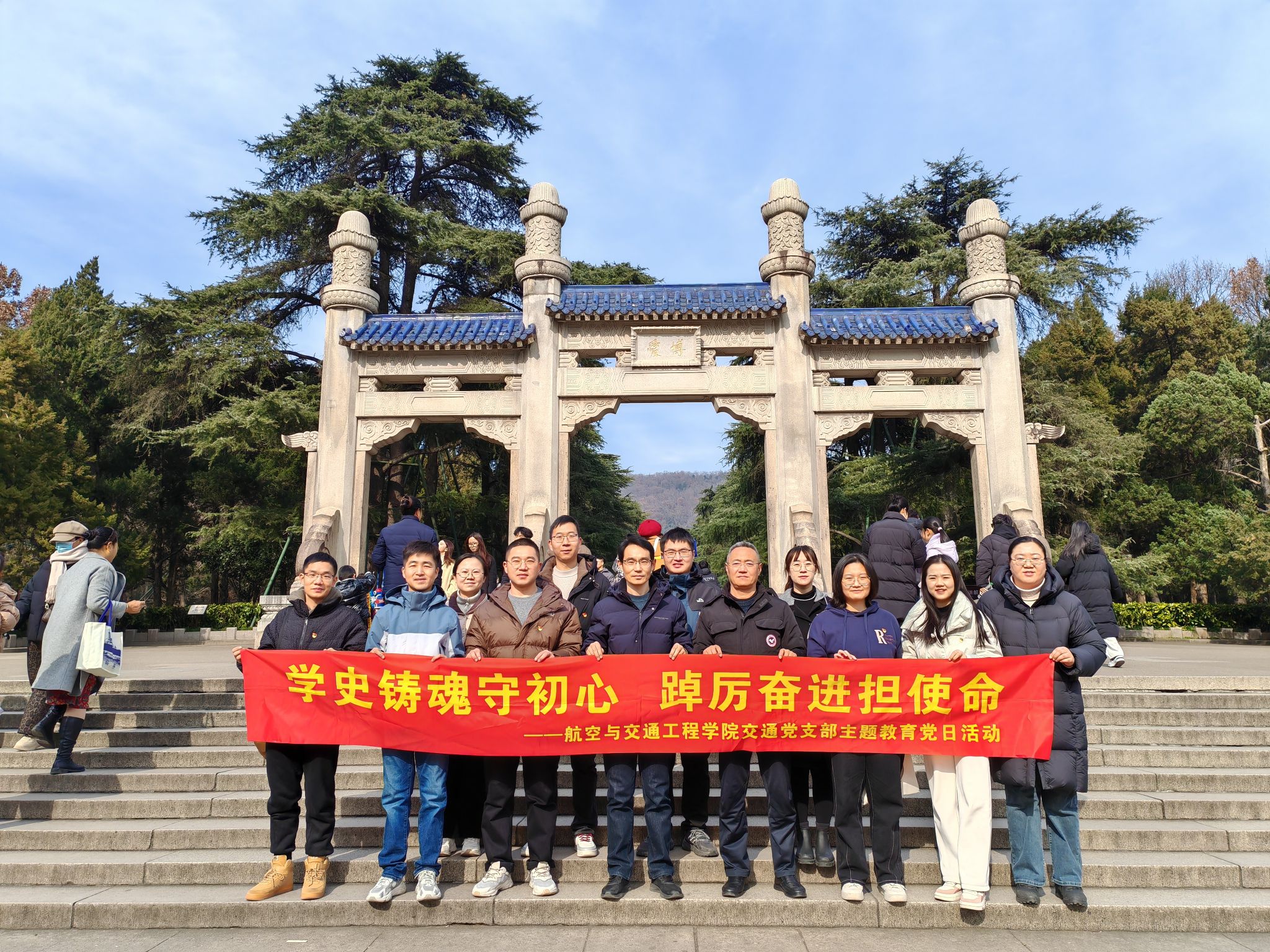 12月21日-22日,航空与交通工程学院交通党支部前往南京开展“学史铸魂守初心,踔厉奋进担使命”主题教育党日活动,先后参观南京新四军驻高淳办事处旧址、梅园新村纪念馆、渡江胜利纪念馆以及中山陵等纪念场馆,进一步激发广大师生的爱国情怀与奋斗精神,增强党组织的凝聚力和战斗力。