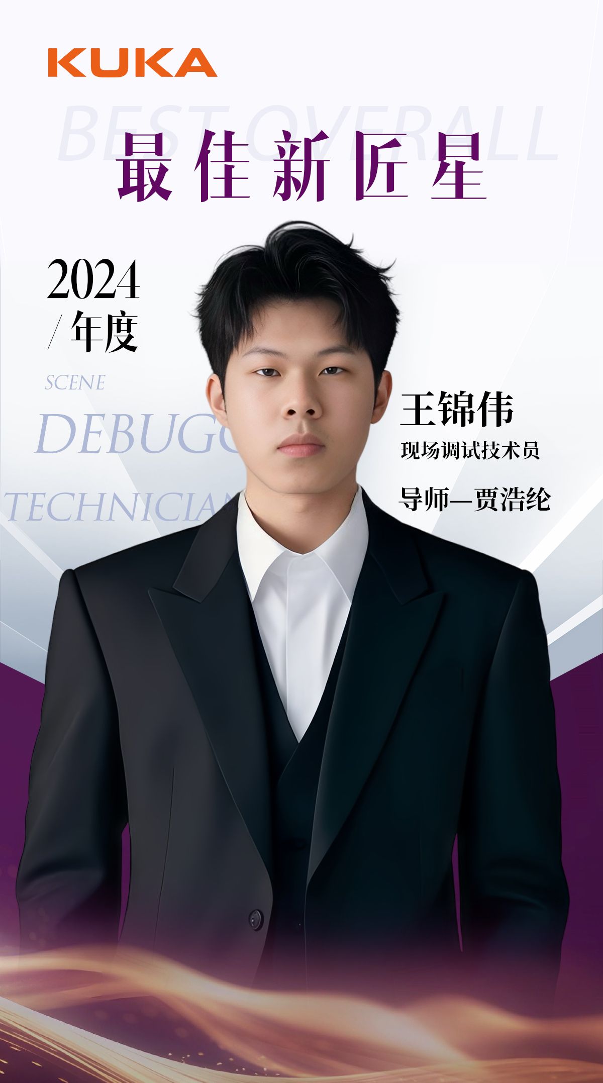 日前,从“库卡中国”传来喜讯,正在该公司实习的我校智能制造学院大三年级学生王锦伟(男,22机器人一班)、叶健平(男,22机器人二班)、徐建辉(男,22机器人二班)等3人获得“库卡公司2024年度最佳新匠星”称号。获此称号的共9人,由该公司独立从当年入职公司的260名来自全国各高职院校的实习生中遴选产生。