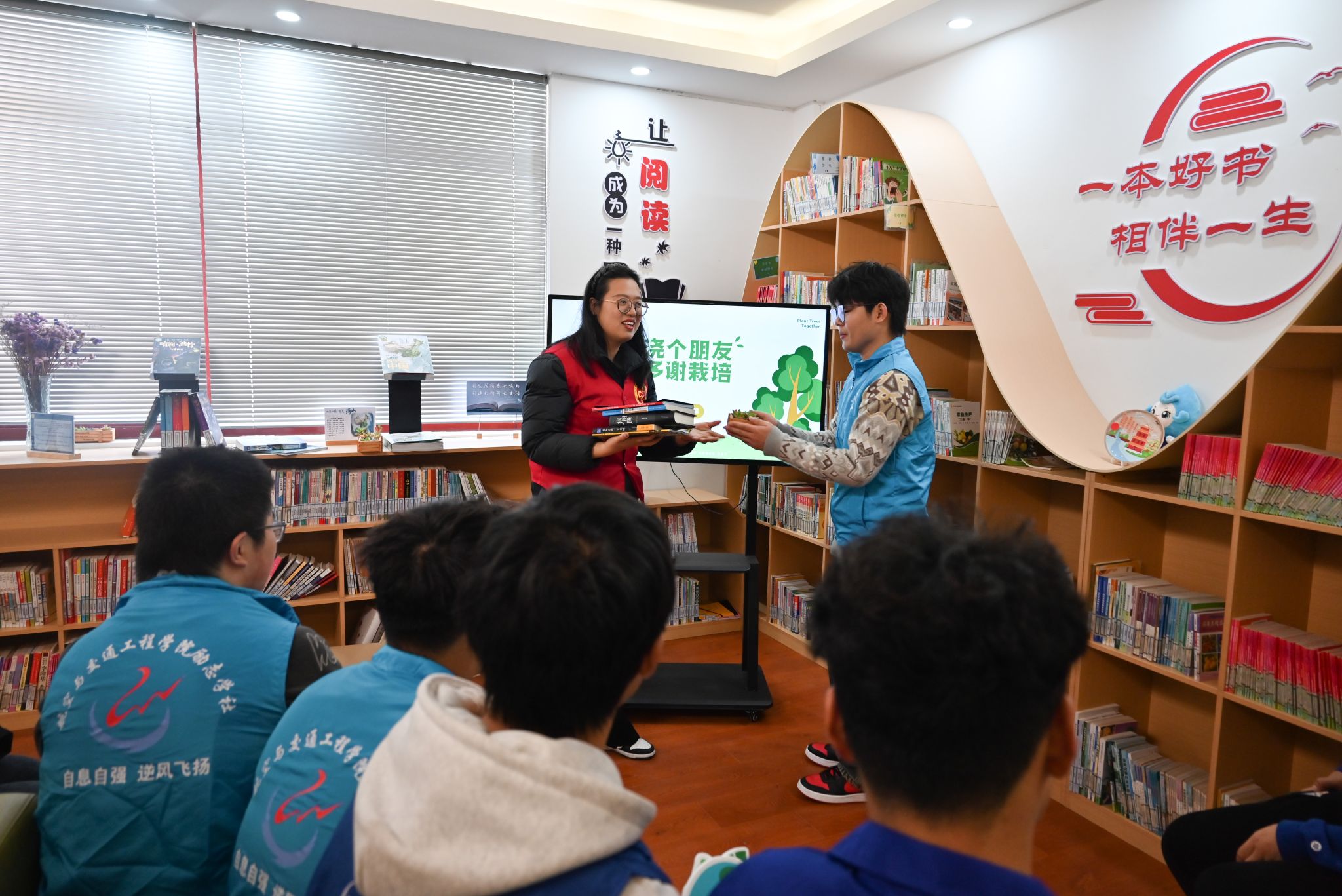 在港新村法治文化广场,学院志愿者们现场演示科学种植技巧,与村民齐心协力种下新树苗,以实际行动践行绿色发展理念。植树结束后,大家围坐共读,朗读环保书籍选段,并结合“树木固碳”与生态保护理念展开讨论。活动还设置“环保知识闯关”环节,参与者通过趣味问答掌握绿色知识,答对者可领取绿植盆栽,将环保意识带回家。