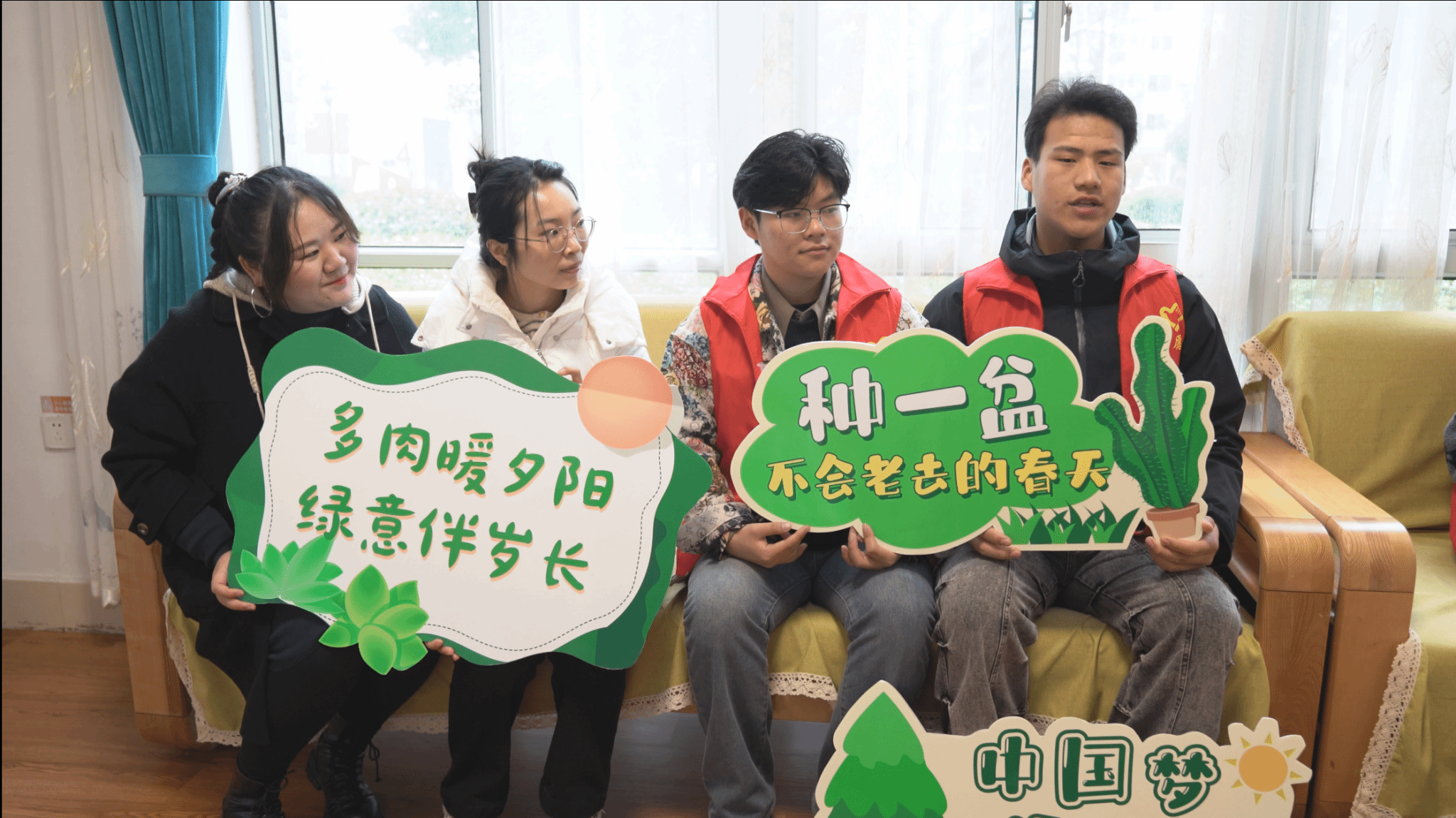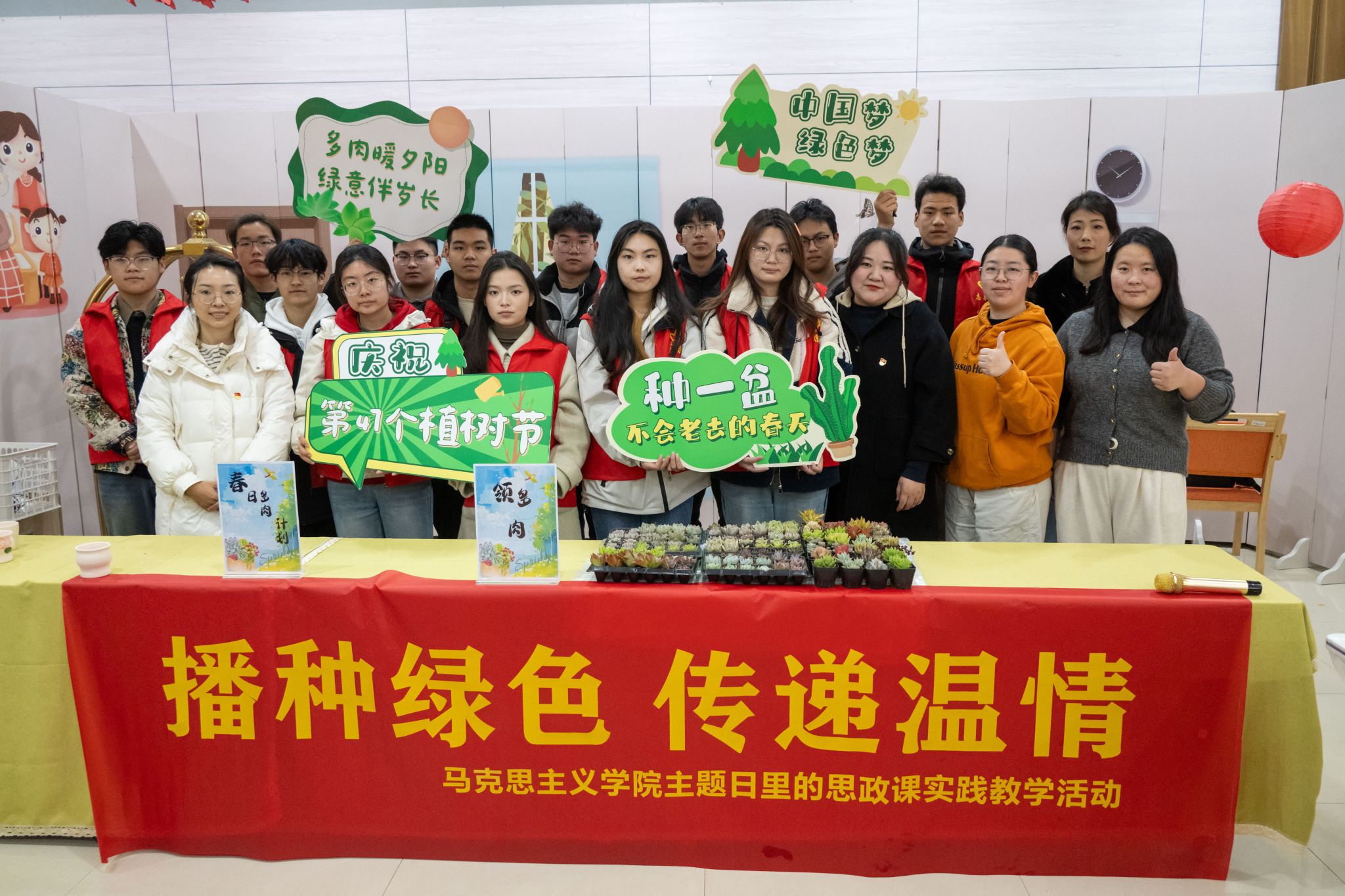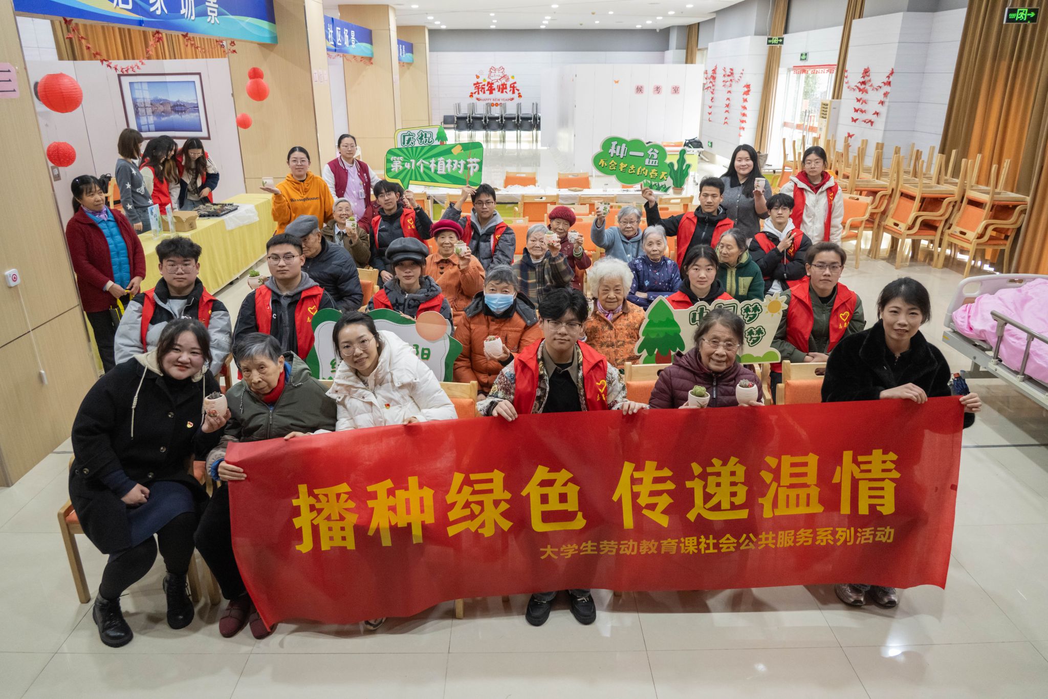 在第47个植树节来临之际,我校马克思主义学院思政课教师张驰越、王格格、徐甜甜带领大学生志愿者走进南通市阳光养老中心,举办了一场主题为“春‘锋’送暖,绿意传情”的“主题日里的思政课”暨志愿服务活动。