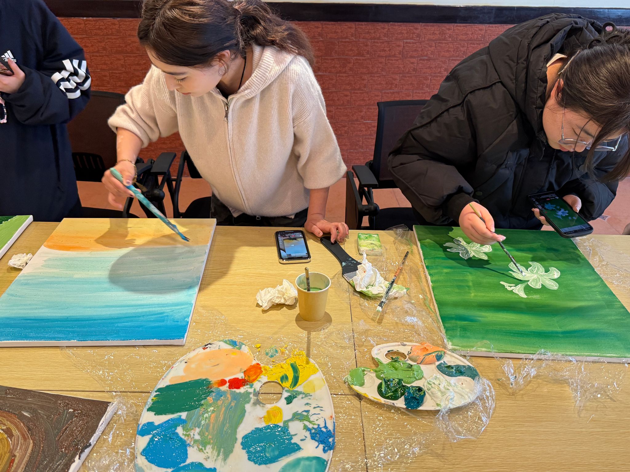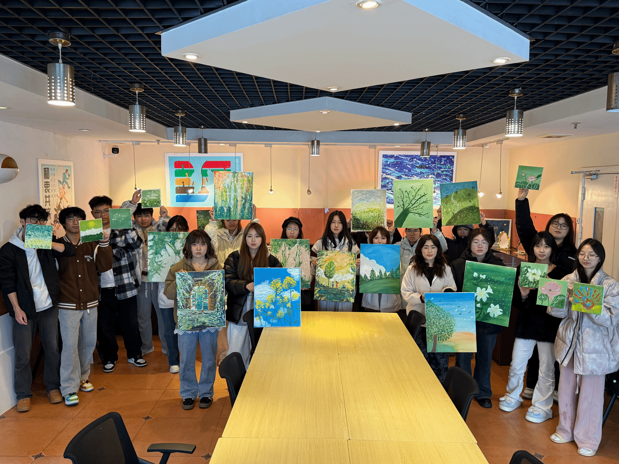 3月12日植树节当天,艺术设计学院在崇川校区内10“红色家园”活动室内举办“石榴同心筑青绿,肌理画中绘春色”植树节肌理画创作活动。活动在辅导员张馨玉、许照琦的指导下,将环保理念与专业实践相结合,20余名学生以颜料为媒介,共绘绿色画卷。其中三位来自新疆的少数民族学生参与创作,为活动注入多元文化活力。