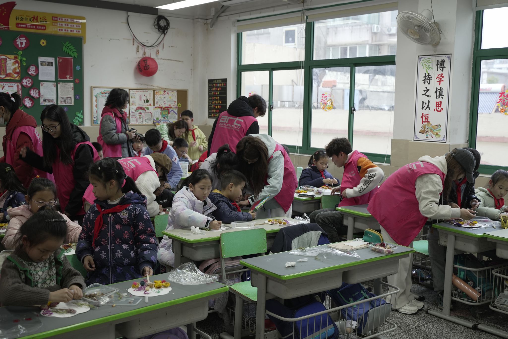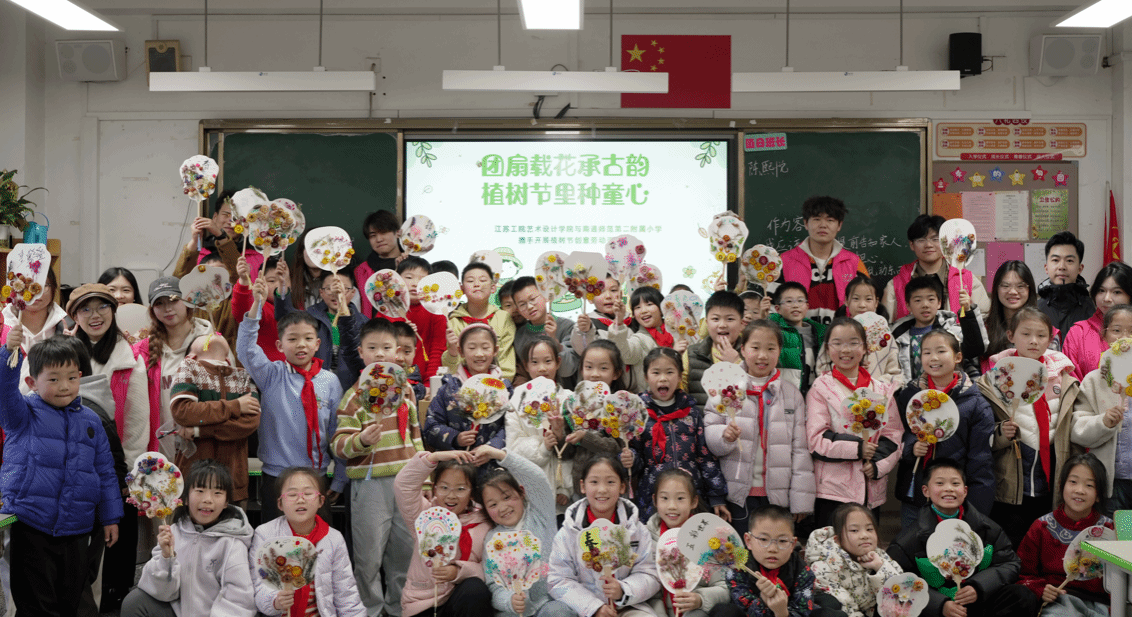 春风拂绿,万物复苏。3月12日植树节当天,艺术设计学院大学生志愿者们走进南通师范学校第二附属小学,与小学生们共同开展了一场“永生花团扇”DIY创意劳动手工活动。活动以“团扇载花承古韵,植树节里种童心”为主题,旨在通过手工制作永生花团扇制作为纽带,将传统文化传承与绿色生态教育深度融合,在指尖艺术中播种环保意识,滋养文化自信。