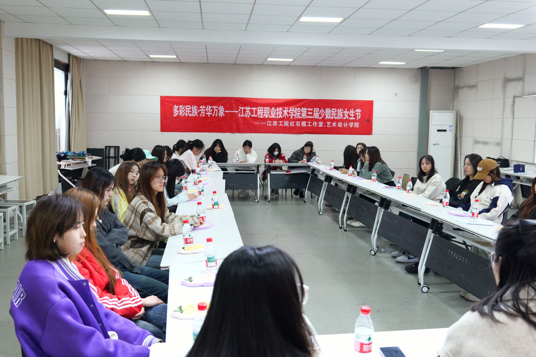 4月2日下午,由红石榴工作室与艺术设计学院联合主办的“多彩民族·芳华万象”少数民族女生节系列活动之“她未来·我与榜样面对面”座谈会在有恒楼302举办。来自各学院的30余位少数民族女生代表齐聚一堂,学工处副处长朱平、艺术设计学院党总支书记彭曼、智能制造学院辅导员保钰出席活动,艺术设计学院辅导员许照绮主持座谈会。
