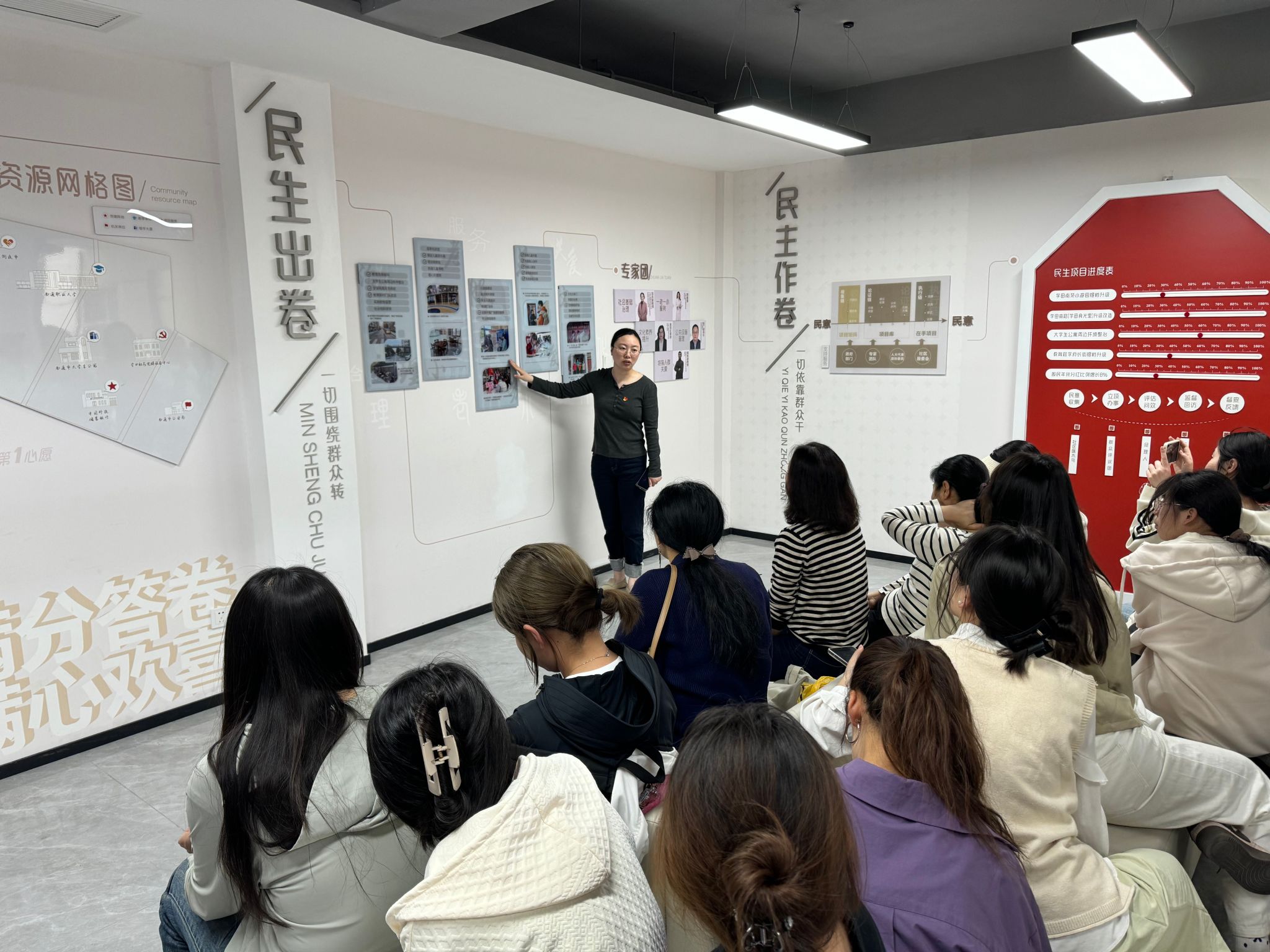 我校师生参观了“全过程人民民主社区实践展馆”,了解了社区全过程人民民主基层示范点建设及运行情况,知晓了各级人大代表和街道选民议政代表作用发挥以及推进民生实事项目落实等工作流程。