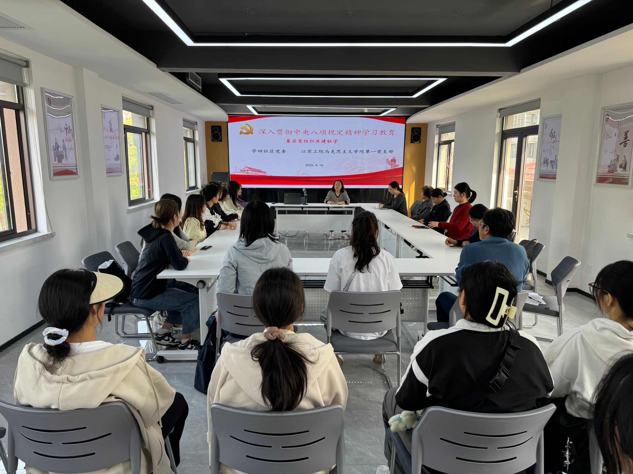4月16日下午,马克思主义学院第一党支部组织党员教师、20余名学生代表前往学田社区,开展以“扎根基层实践,感悟人民民主”为主题的党日活动。学田社区党委书记卜晓冬、副书记俞佳琳和支部书记代表等参加了此次活动。