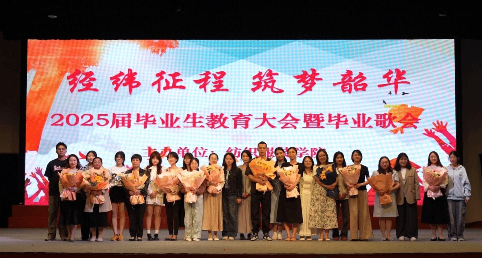 5月11日晚,纺织服装学院在大礼堂举办了2025届毕业生教育大会暨“经纬征程 筑梦韶华”毕业歌会。校党委委员、副校长尹桂波,党委学工部(处)长徐明,校团委副书记张禧嘉,纺织服装学院党政领导,全体毕业班班主任、家长代表以及2025届600余名毕业生齐聚一堂,共同见证这场青春与梦想交织的盛会。