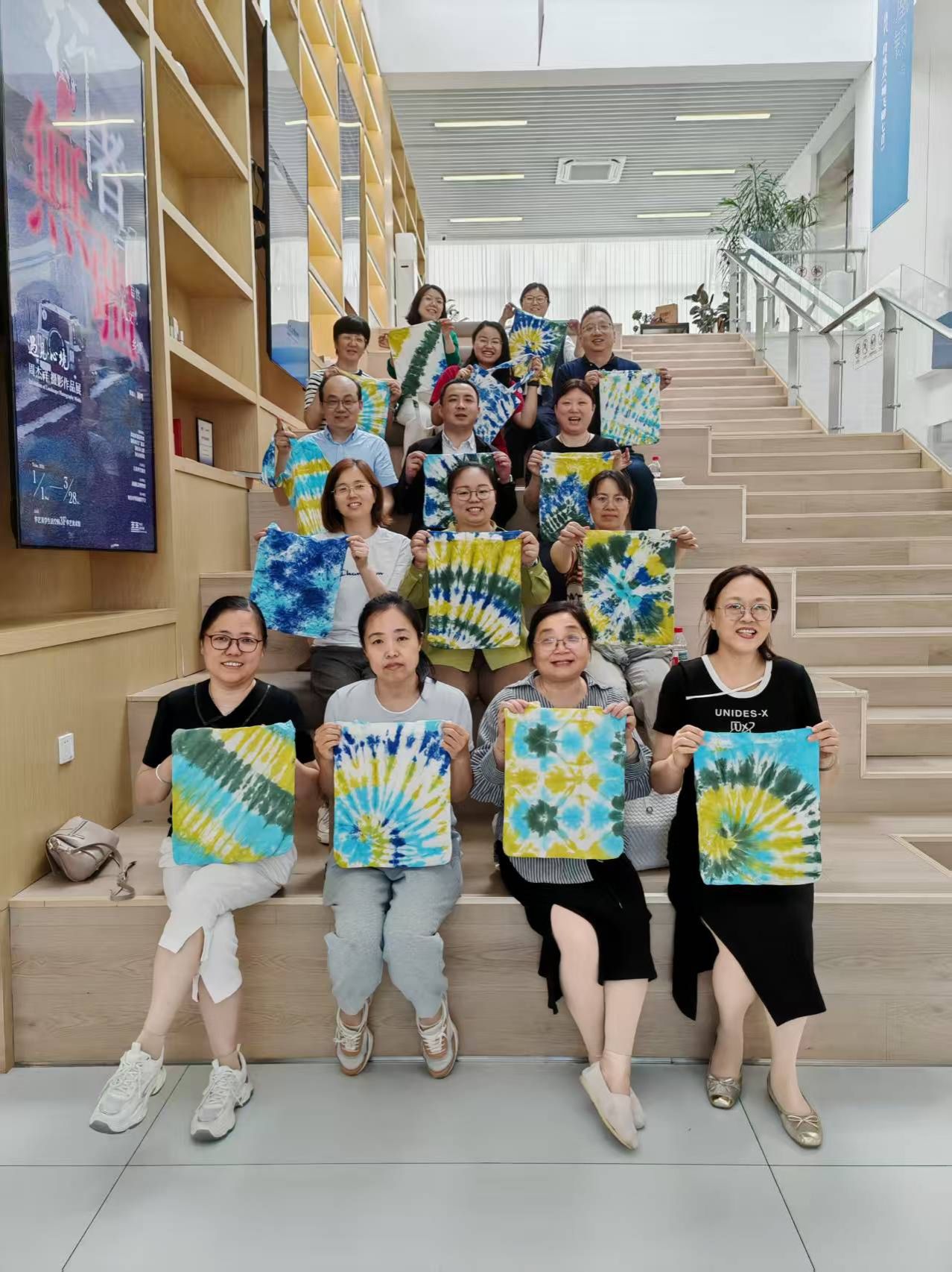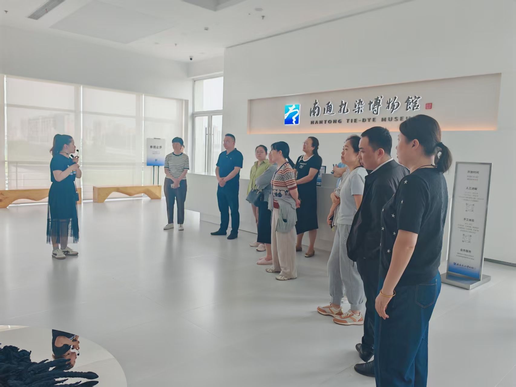 调研组一行参观了华艺扎染博物馆,重点考察非遗技艺的产业化应用与技术创新。公司人事负责人韩加梅介绍了传统扎染工艺的现代化改造案例。党员代表们与企业负责人围绕扎染技艺保护、技术创新、人才培养等议题展开深入交流。针对企业面临的非遗技艺数字化创新、创新型复合人才缺乏等问题,大家一致认为,职业院校在培养输送技术型人才的同时,更要加强与企业的产学研合作,支持企业数字化升级,促进企业新质生产力发展。