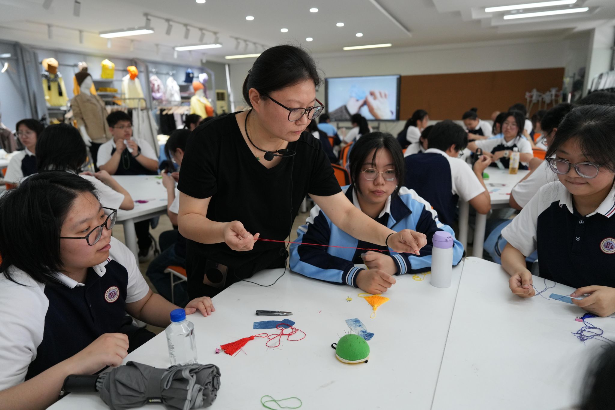 在服装工艺实训室,杨霞老师通过旗袍造型书签制作,展现技能教育的现实价值。从布料打版到针法演绎,平针的规整与回针的灵动在指尖流转,每位学子都创造出独特的“旗开得胜”书签。这种将非遗元素融入日常用品的创新实践,生动诠释了“技能让生活更美好”的真谛,为青少年打开了工艺美术领域的职业想象空间。