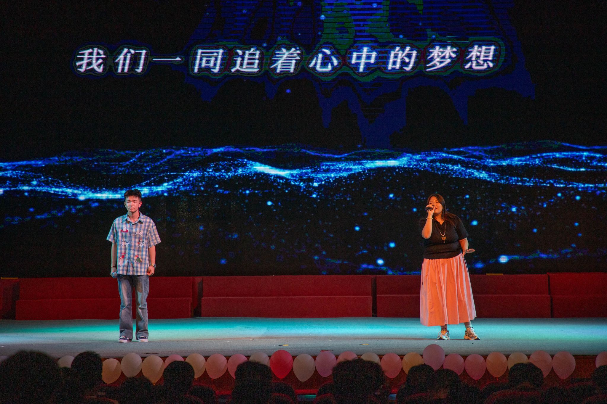 在“逐梦前行,致敬奋斗”主题环节,舞蹈《supernova》将现场气氛推向又一个高潮;赵钰驰《无名的人》致敬每一个在平凡岗位上默默耕耘的追梦人;匡梦妍与次旺江措合唱的《夜空中最亮的星》指引着毕业生们坚定的步伐,朝着心中的理想奋勇前行;郭亚萍深情演绎的《追光者》,更是唱出了建工学子的心声。