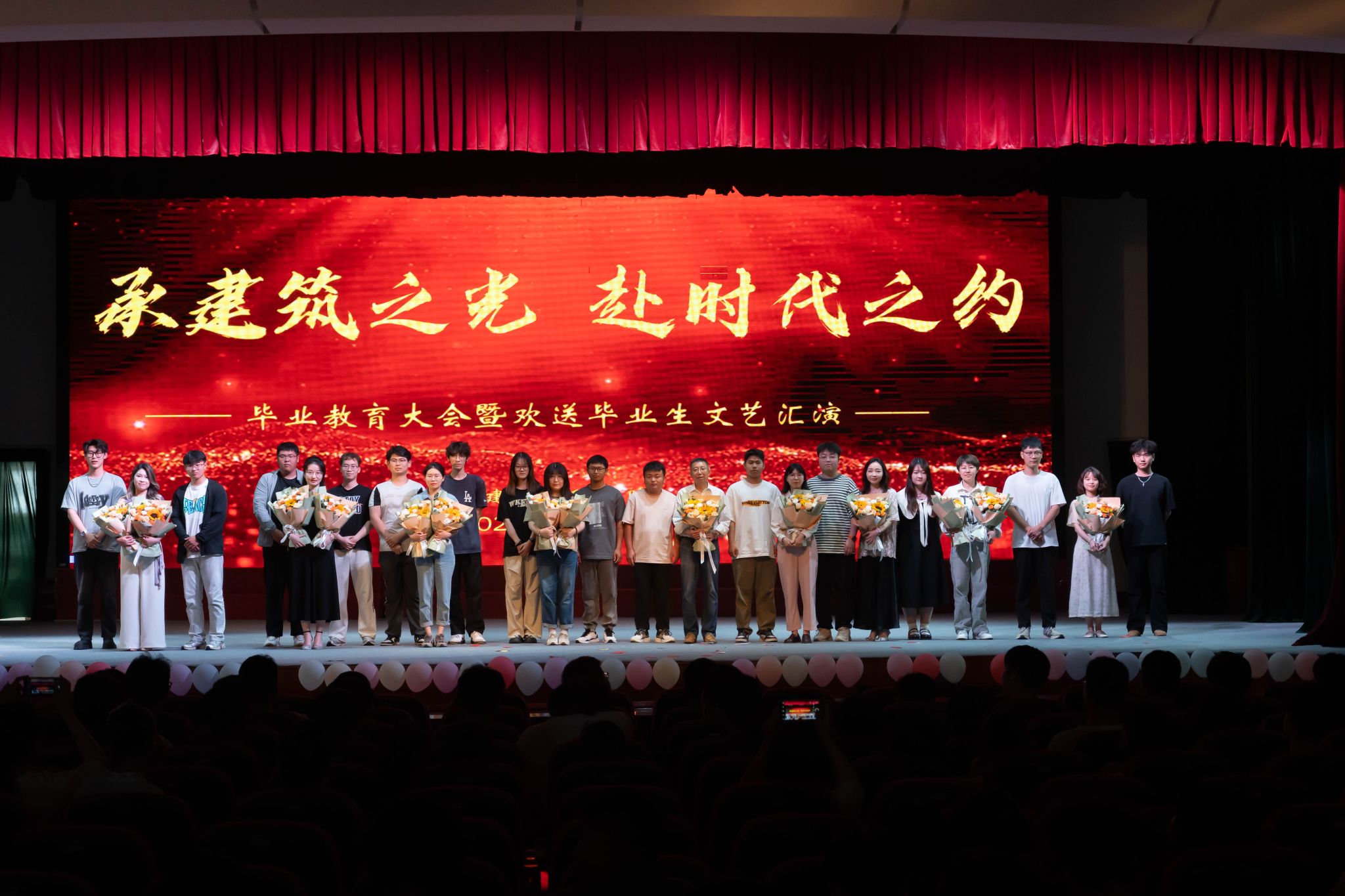 5月22日下午,建筑工程学院在崇川校区大礼堂举办“承建筑之光,赴时代之约”毕业教育大会暨欢送毕业生文艺汇演。建筑工程学院党政班子、2025届毕业班班主任、任课老师代表与2025届毕业生共同观看了演出。