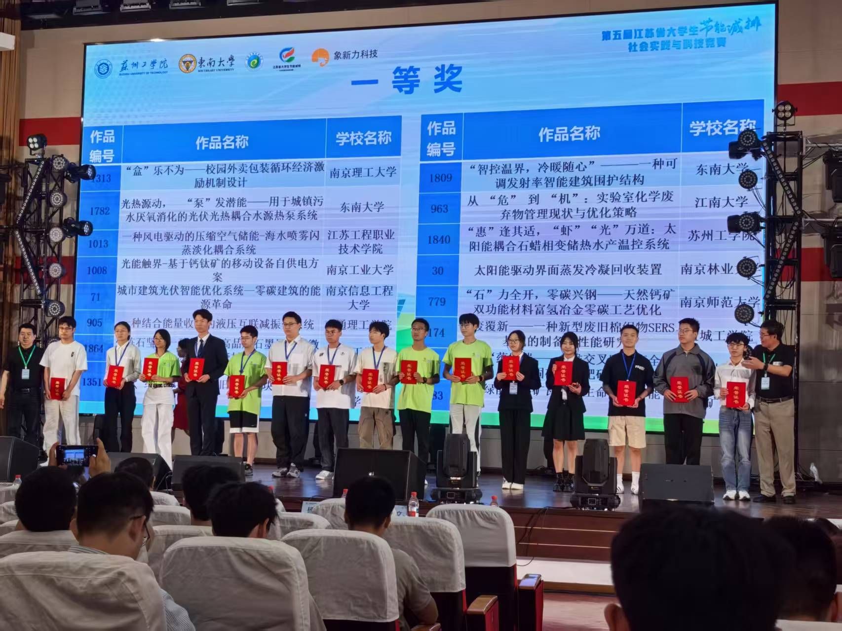 江苏省大学生节能减排社会实践与科技竞赛紧密对接“碳中和·碳达峰”国家战略,由江苏省高等教育学会、江苏省科学技术协会指导,东南大学、江苏省能源研究会等单位主办。本次竞赛省内参赛高校院所共计53家,共报名作品2000余项,336项作品入围决赛,其中高职院校3家共计4项作品入围决赛,我校入围2项,成绩位于省内高职院校第一。本次节能减排大赛是继去年我校首次参与并获三等奖之后的重大突破,在与东南大学、南京理工大学、南京航空航天大学、河海大学等省内头部本科院校同台竞技中,再次取得佳绩。