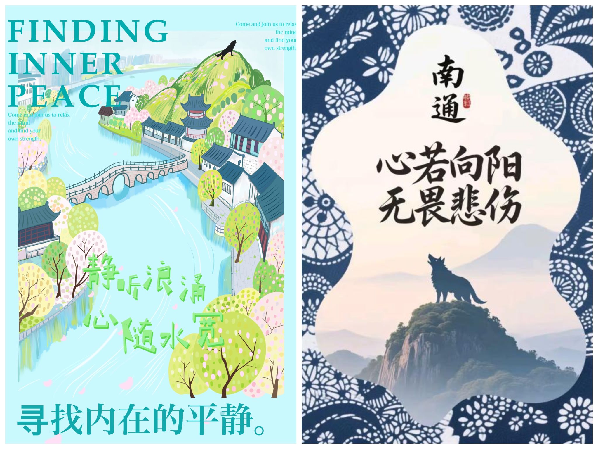 活动启动以来,全校学生积极响应。心理中心共收到各学院推荐的优秀作品三十余份。同学们将濠河、狼山等南通地域元素与压力管理、情绪调节等心理主题巧妙结合,通过水波、山峦、传统纹样等意象,将抽象的心理健康概念转化为富有感染力的视觉语言,传递积极向上的心理调适理念,展现出对心理健康议题的深刻思考与艺术创造力。经评审,共评选出一等奖1名、二等奖2名、三等奖3名。优秀作品后续将代表学校报送南通市大中专院校心理健康委员会,参与市级心理创意作品大赛,进一步扩大心理健康科普的社会影响力。