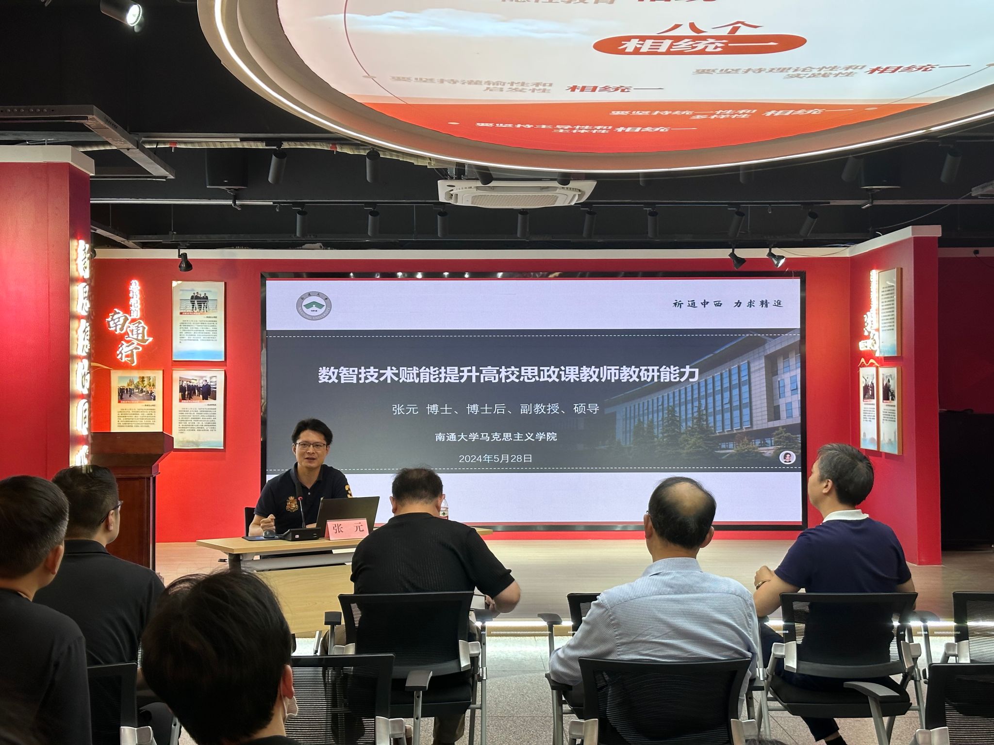 5月28日下午,我校马克思主义学院特邀南通大学马克思主义学院张元副教授在新思想践悟馆作《数智技术赋能提升高校思政课教师教研能力》专题讲座。马克思主义学院党总支书记钱晋主持活动,全院思政教师参与学习交流。