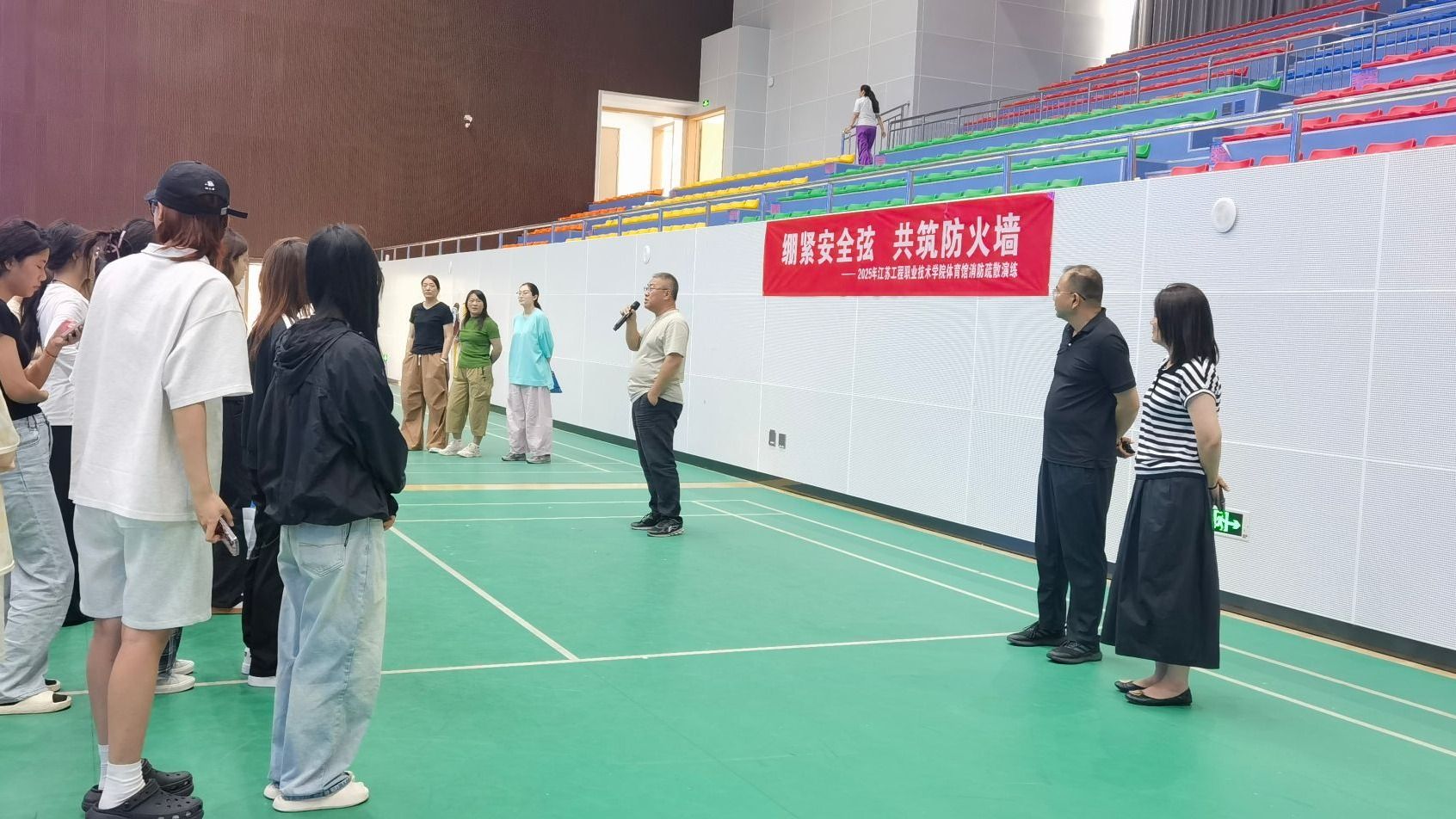 为提高师生消防安全意识,增强应对突发灾情的处置能力,6月5日上午,体育部在综合体育馆开展了“紧绷安全弦 共筑防火墙”消防疏散演练。体育部教师、体育选项班学生共300余人参加演练。
