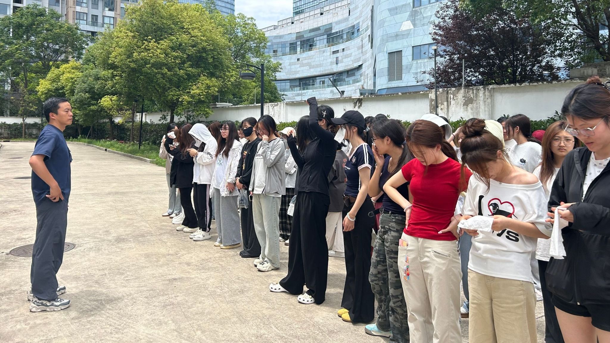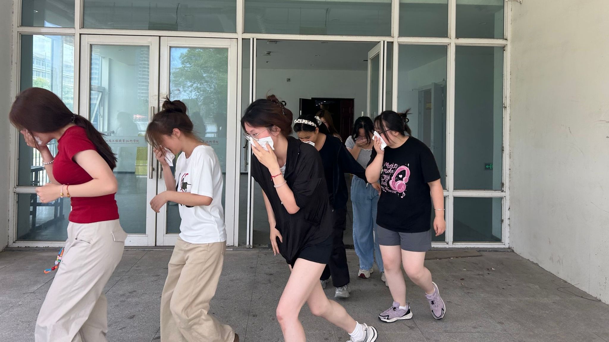演练开始前,安全与保卫处副处长朱晓虎为师生进行了消防安全教育培训,详细介绍了不同情况下火灾应急处理和逃生技能等方面的知识。随后,体育部师生在日常教学场地待命。接到预警信息后,各应急小组人员分工合作,组织师生迅速疏散撤离。全体师生按照预案规定的就近疏散路线和“火场”逃生疏散演练技巧,用湿毛巾捂住口鼻,低姿通过安全出口,撤离到室外指定集合地点,然后由教师集合清点人数,整个演练过程安全高效、井然有序。