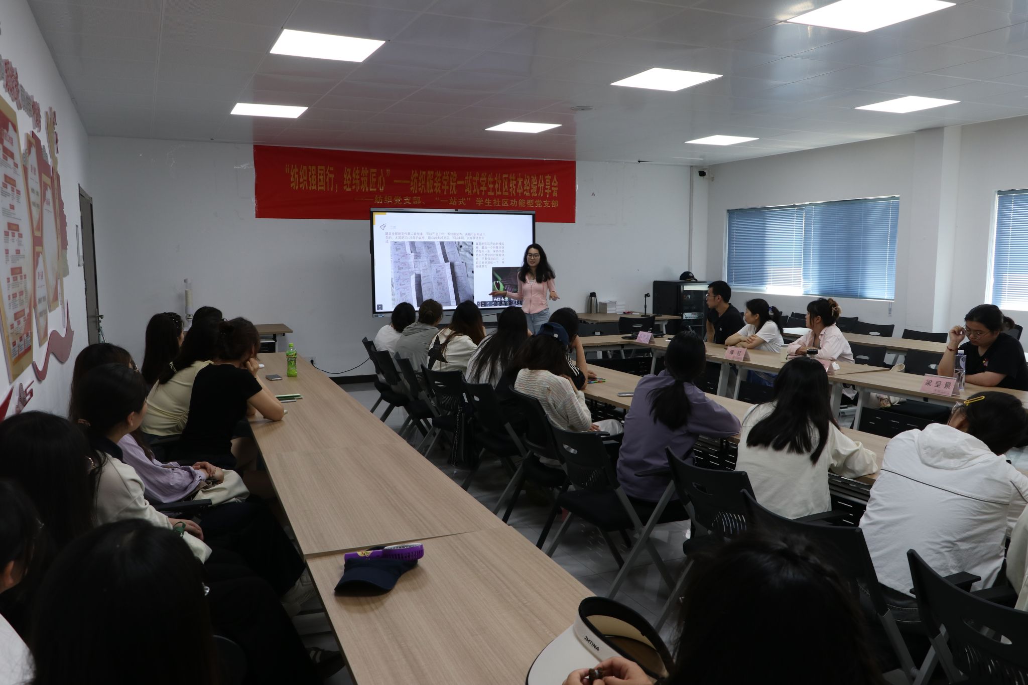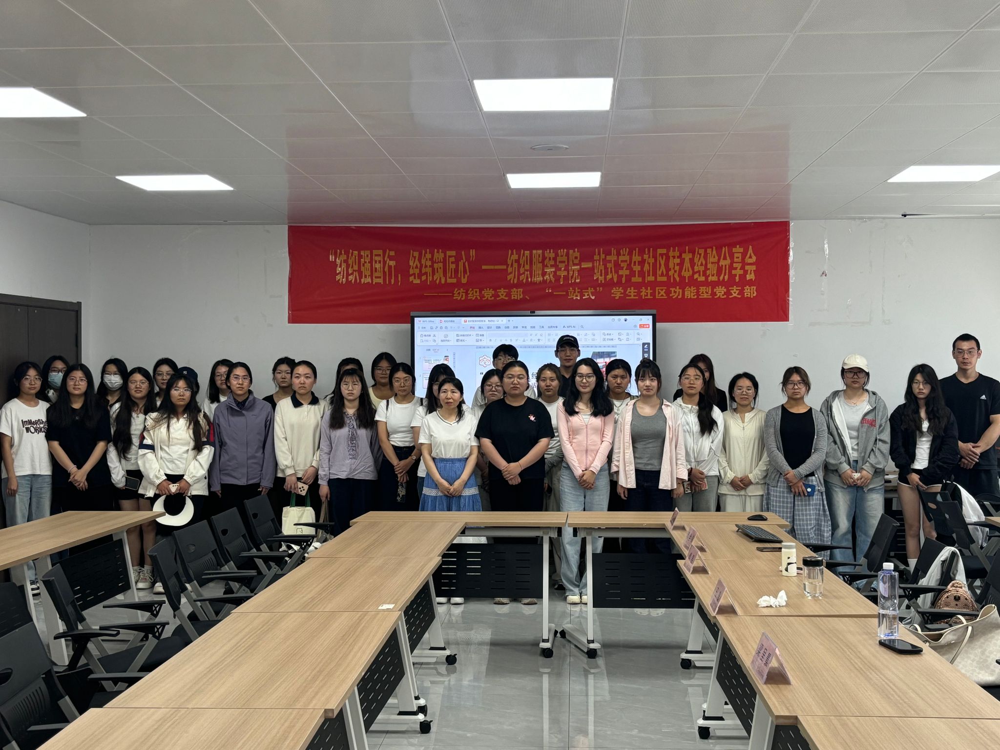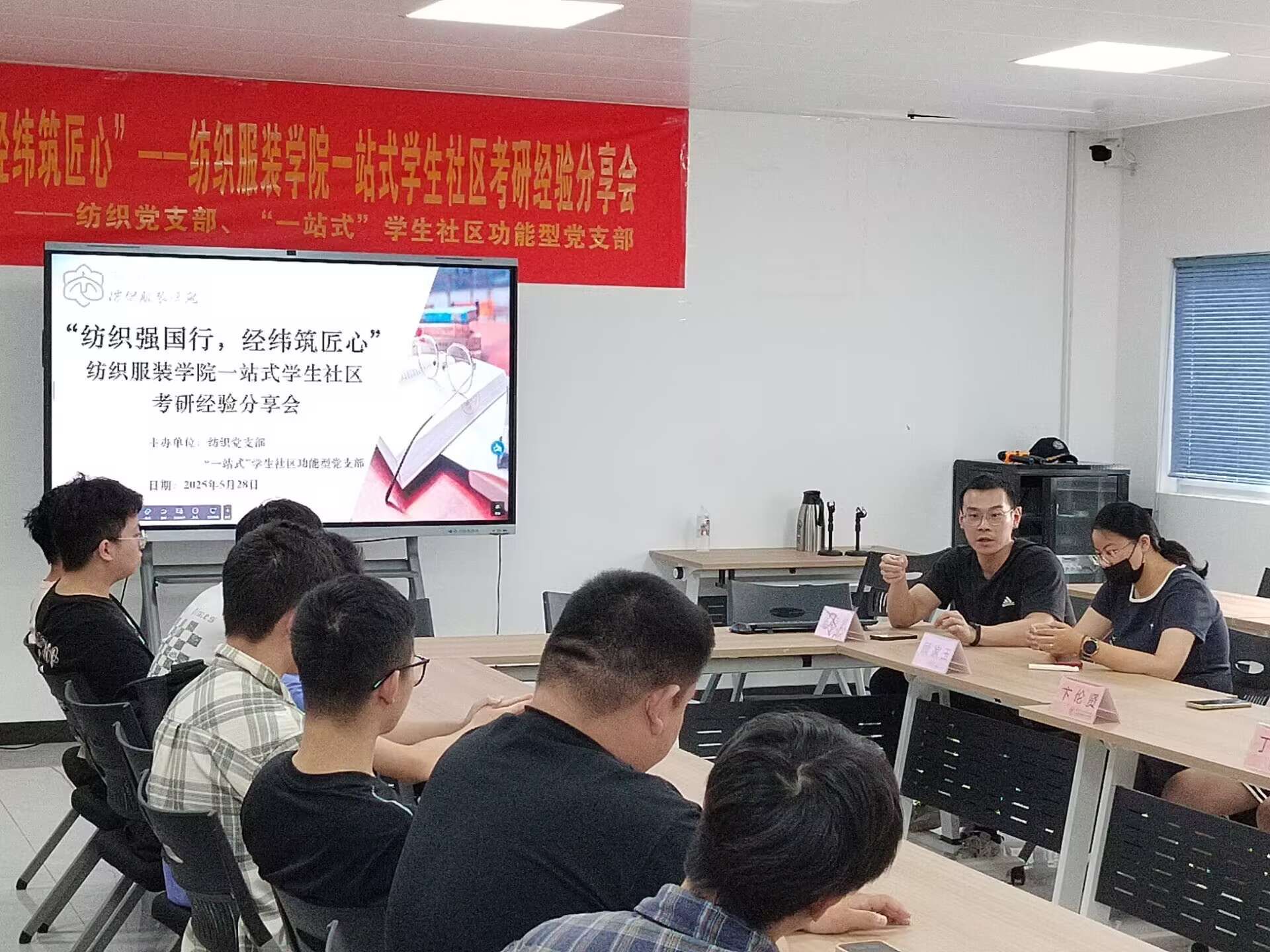 为深入贯彻落实立德树人根本任务,强化党建引领赋能育人实效,近日,全国高校“双带头人”教师党支部书记工作室、教育部“强国行”专项行动团队走进“一站式”学生社区,与学校“一站式”学生社区功能型党支部联合举办“纺织强国行,经纬筑匠心”考研、转本经验分享会。