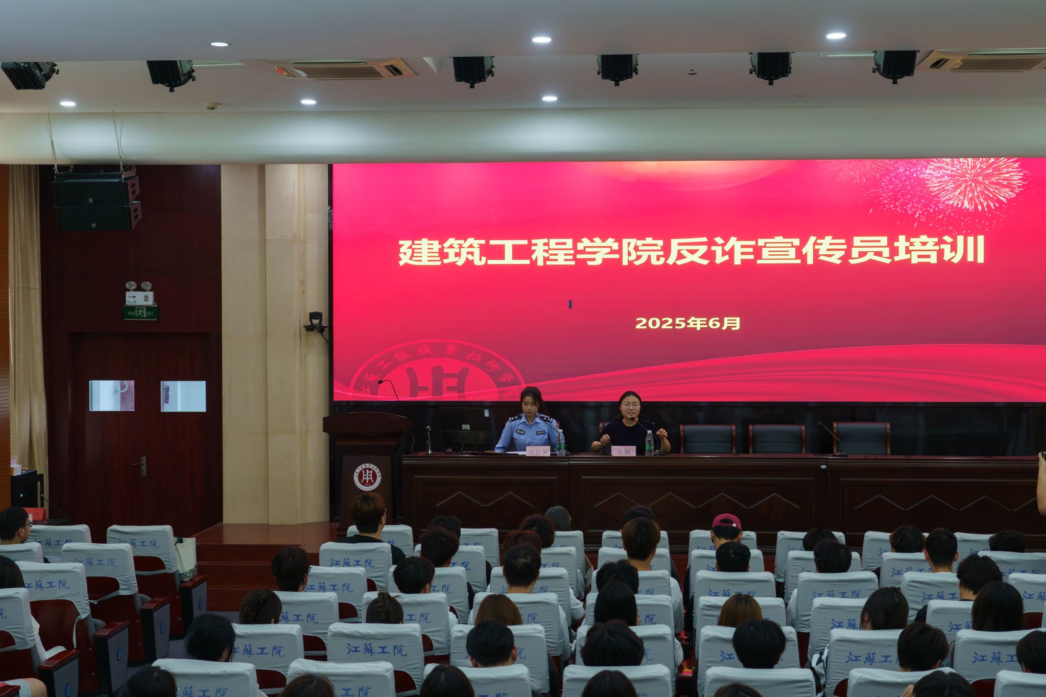 为有效提升大学生防范电信网络诈骗的意识和能力,从源头上预防诈骗案件发生,6月5日下午,建筑工程学院邀请海门港新区海防派出所民警周佳琳在海门校区200人报告厅开展反诈宣传专题培训,党总支副书记吴颖和学院的反诈宣传员们参加了本次活动。