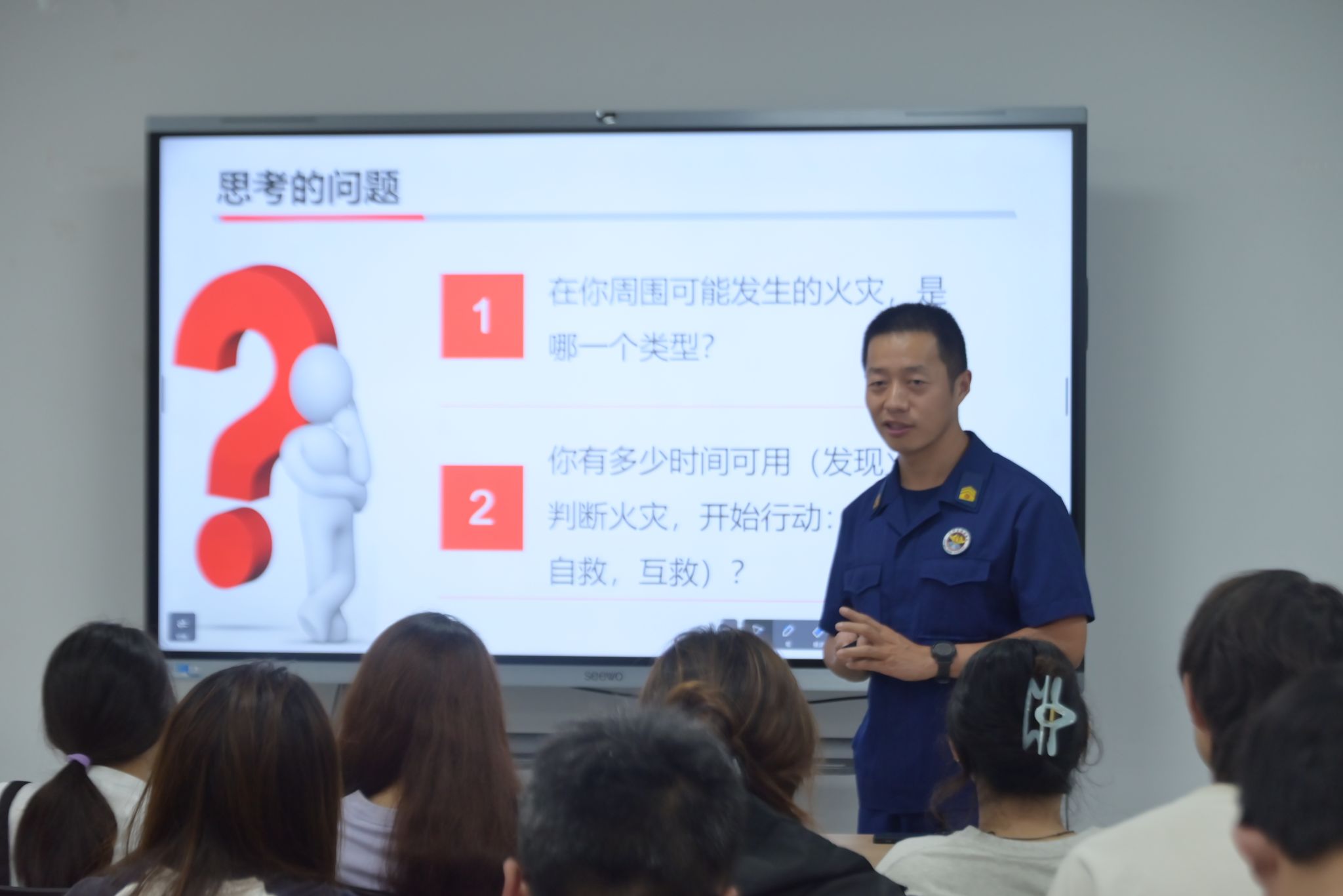 为了提升学生的消防安全意识和应急自救能力,校党委委员、副校长孙兵、学田消防救援站指导员顾翘楠走进一站式学生社区,为各学院自管会学生干部带来了一场生动实用的火灾逃生知识培训。培训会上,孙兵强调,学校高度重视学生的生命安全,各部门、各单位将积极响应国务院安委会“安全生产月”的活动部署,贯彻落实《江苏省学校消防安全标准化管理指南》,重点加强学生消防、火灾逃生等安全知识的普及教育,为校园安全筑牢底线。顾翘楠结合多年消防一线工作经验,以校园火灾特点为切入点,深入浅出地讲解了火灾的成因、危害及预防措施。他通过真实案例分析,重点强调了火灾发生时的“黄金逃生时间”,并详细讲授了“捂口鼻、低姿行、辨方向、勿慌乱”等逃生口诀。针对宿舍、教室等学生密集场所,顾指导员还特别指出易被忽视的安全隐患,如私拉电线、堆放杂物等,提醒学生干部在日常管理中加强监督,强化发现隐患和应急处置能力。