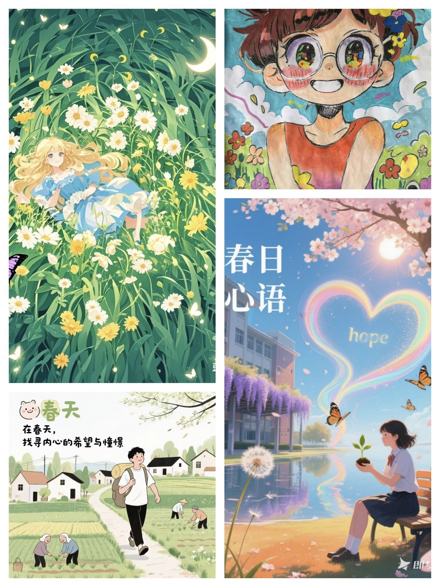 4月15日,春日绘画作品征集活动以“春天与心理主题融合”为核心,引导学生用插画、漫画描绘校园春景或内心希望。建工心理站收集有《蝶舞月夜花中眠》《春》《春江水暖》《春日心语》及《花丛中的小女孩》等佳作,皆以A4尺寸画布,细腻描绘出“嫩芽破土,寓意心理之韧”“笑脸如花,传递人际之暖”等创意意象,文字说明中“在调色与笔触中,看见内心的春天正在苏醒”的感悟,为心理健康教育注入艺术温度。