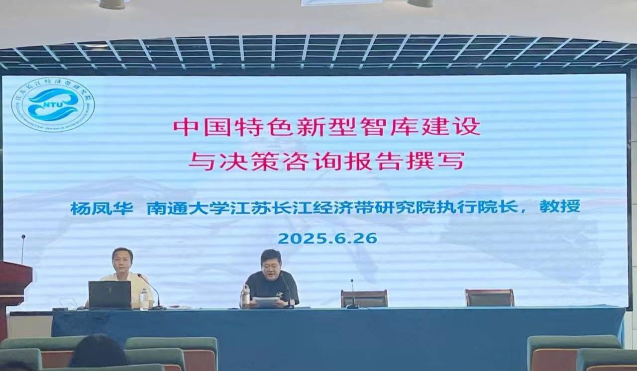 6月26日下午,科研处邀请南通大学江苏长江经济带研究院执行院长杨凤华教授来校做题为“中国特色新型智库建设与决策咨询报告撰写”的专题讲座。科研处处长姜生主持讲座。