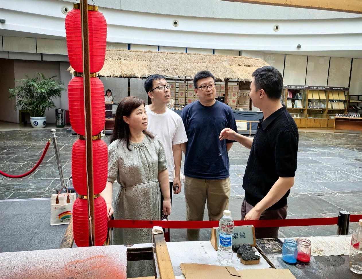 在位于扬州博物馆的沈树华三石斋文化传媒有限公司,负责人彭磊向学院团队系统阐释了“中华优秀传统文化创新性转化”的核心发展理念,现场展示了根植我国非遗技艺创作的系列文创精品。双方围绕“传统文化基因在现代设计中的活化应用”展开深度研讨,彭磊强调“复合型文化创意人才”是企业发展的核心驱动力,校企双方在非遗数字化保护、文创产品开发、产学研协同育人等领域达成战略合作意向。