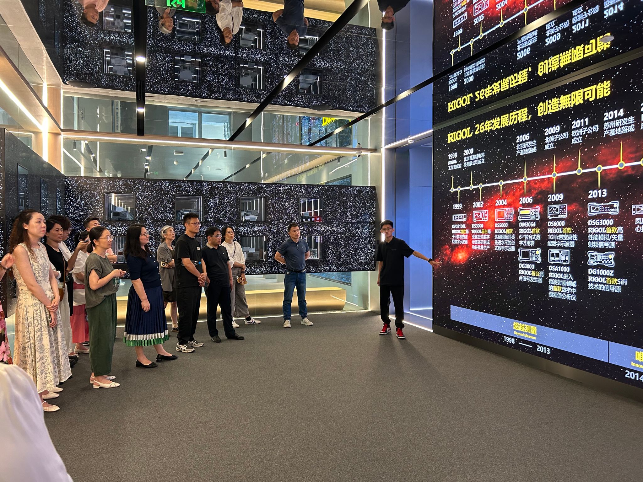 普源精电科技股份有限公司相关负责人对我校一行表示热烈欢迎,并带领大家参观了企业的生产车间、研发中心和产品展示区。参观过程中,负责人详细介绍了公司的发展历程、核心技术、产品体系以及未来的发展战略。大家近距离观察了电子测量仪器的生产流程,了解了企业在技术创新、质量管控和市场拓展等方面的先进经验,双方就技术研发与市场需求的结合、人才培养与企业发展的匹配等问题进行了深入探讨。