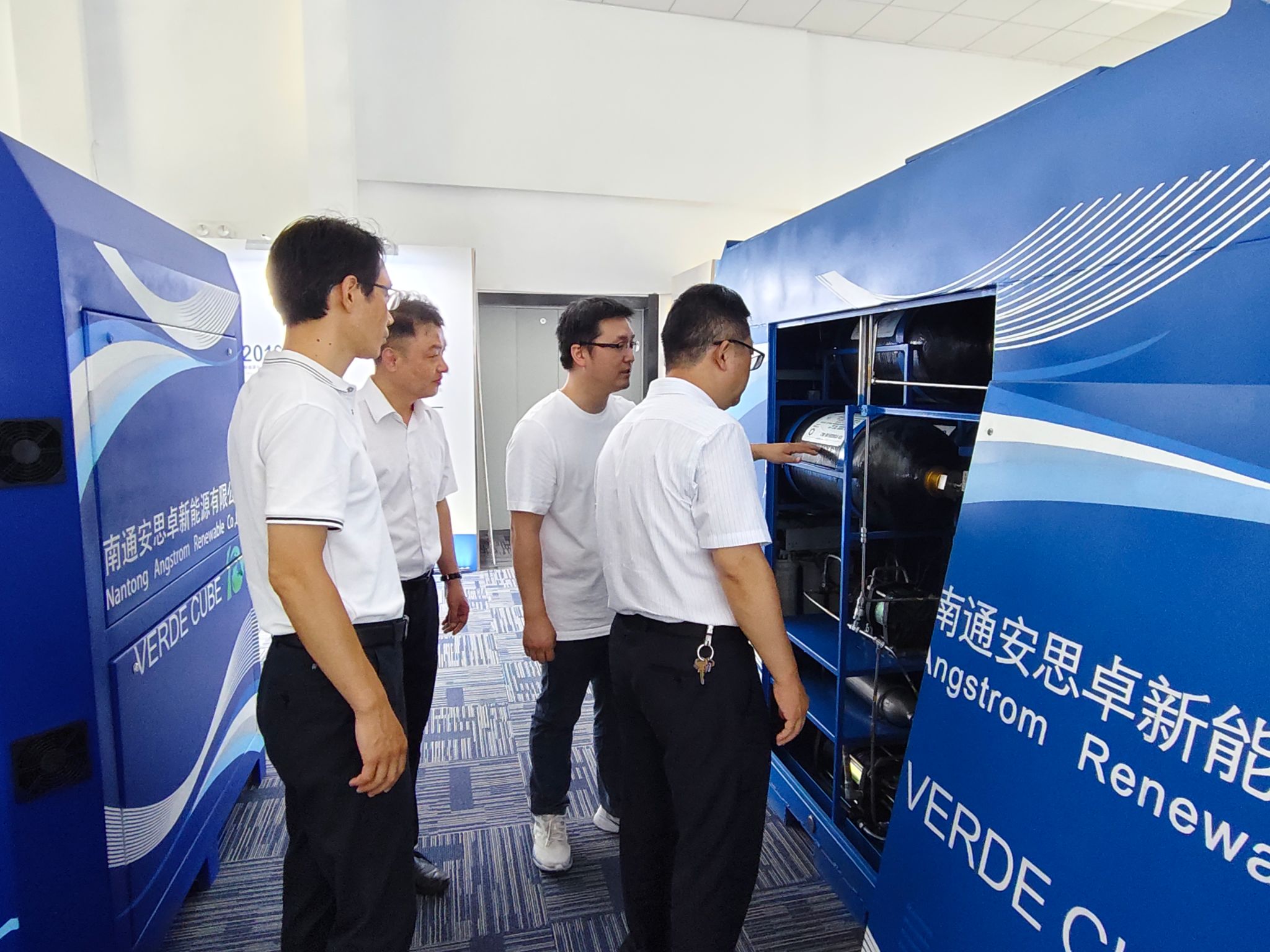 在南通安思卓新能源有限公司,调研团队实地参观了企业的产品展示区,重点了解企业在储能装备与系统集成方面的技术应用与发展方向。企业表示,随着新能源产业加快发展,尤其是制氢等细分领域,对复合型技术人才需求持续增长。