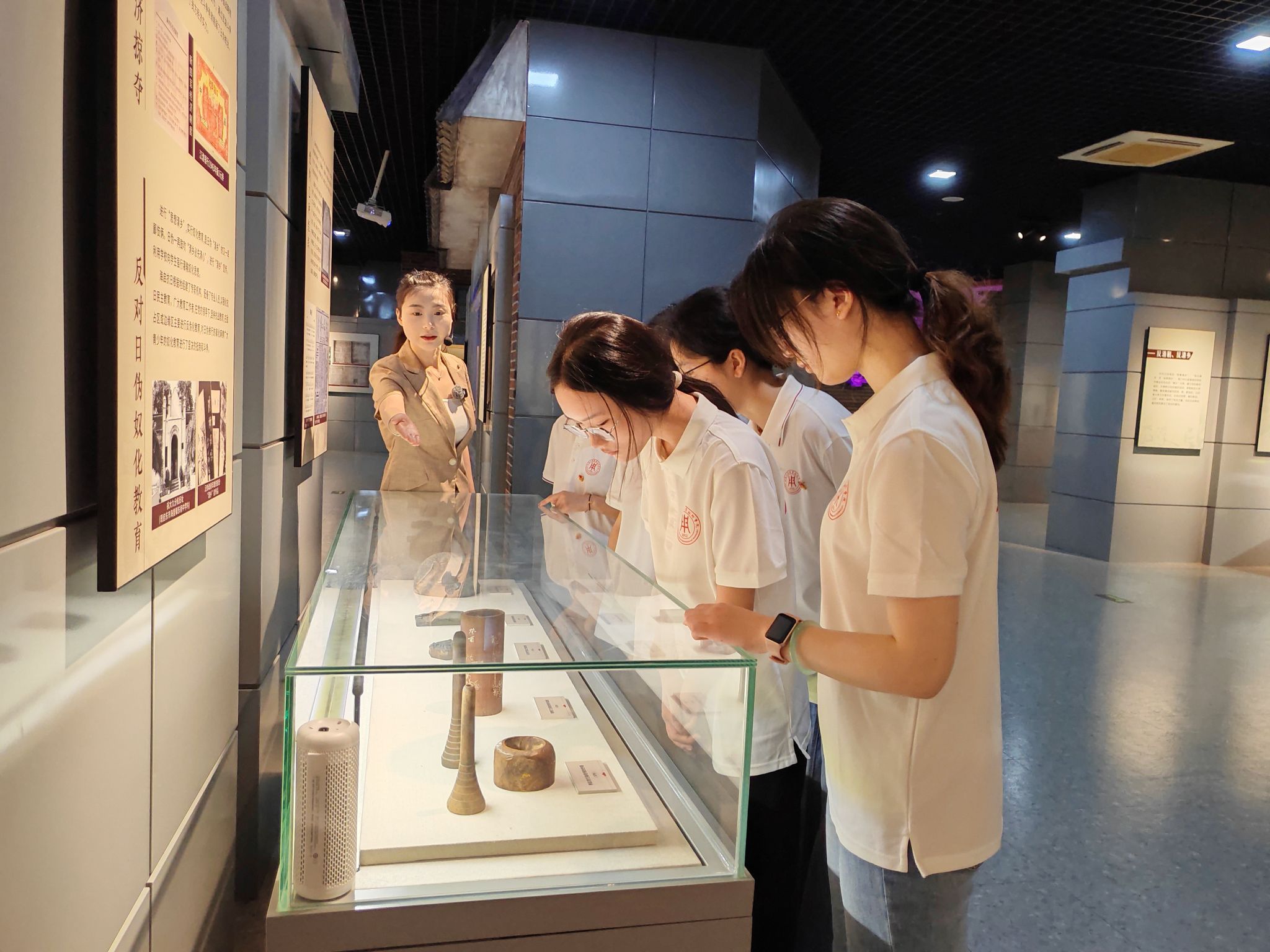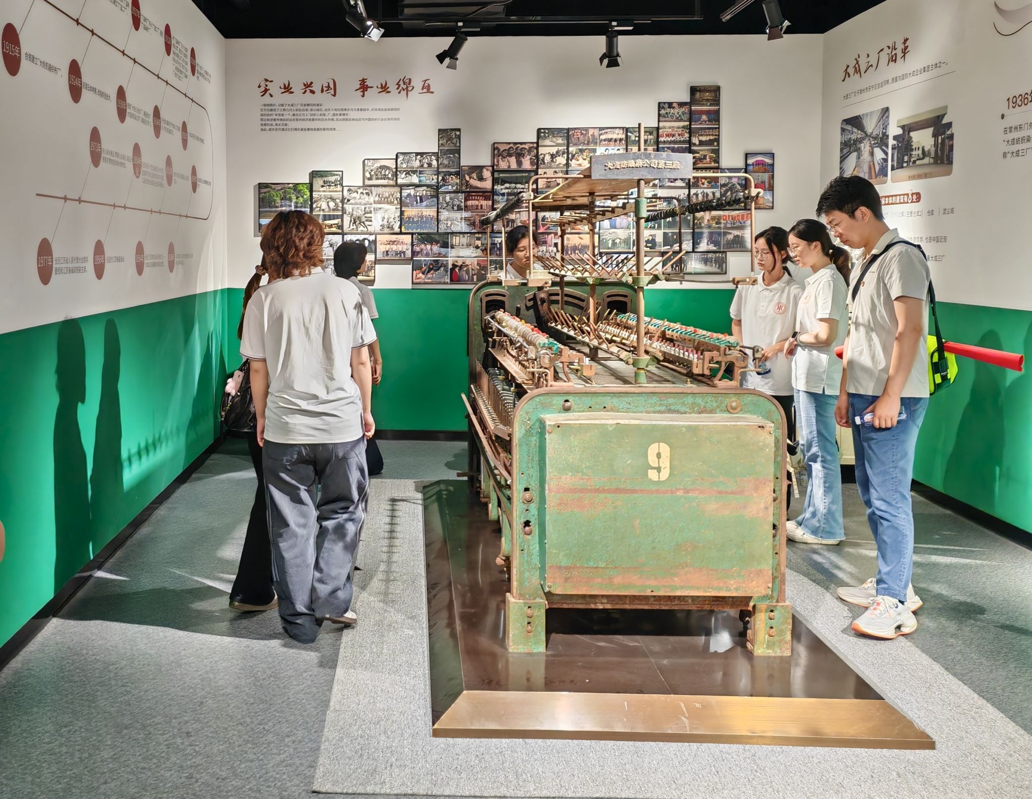 7月21日下午,实践团走进大生纱厂原址,探寻宋祖望、张慎修等纺织工人抗日救亡故事,感悟烽火岁月中普通工人非凡的爱国情怀。在斑驳的砖墙、沉寂的车间、锈蚀的机器与无声的档案前,实践团成员们驻足凝望,认真聆听讲解员的深情讲述。从教工人读书识字,热情地把进步书籍介绍给青年职员和工人阅读,到组织进步的青年职员上课,给工人讲形势、讲抗日救国的道理,教唱抗日歌曲;从建立秘密抗日组织,动员青年工人拿起武器上战场,到对战士们关心备至,把工资全拿出来作为部队的给养,这一系列感人的故事让大家深刻体会到,“经纬”不仅代表纱线,更象征着抗战时期千千万万像宋祖望、张慎修这样的普通工人,他们用自己岗位的坚守与无畏的抗争,在民族命运的经纬线上,绣下了浓墨重彩的爱国篇章。这份“烽火精神”,正是根植于工人阶级最朴素的爱国情感,在血与火的淬炼中迸发出的不屈力量。从聆听感人的故事,到步履坚定地踏入历史现场,实践团成员们完成了从认知到体悟的升华。