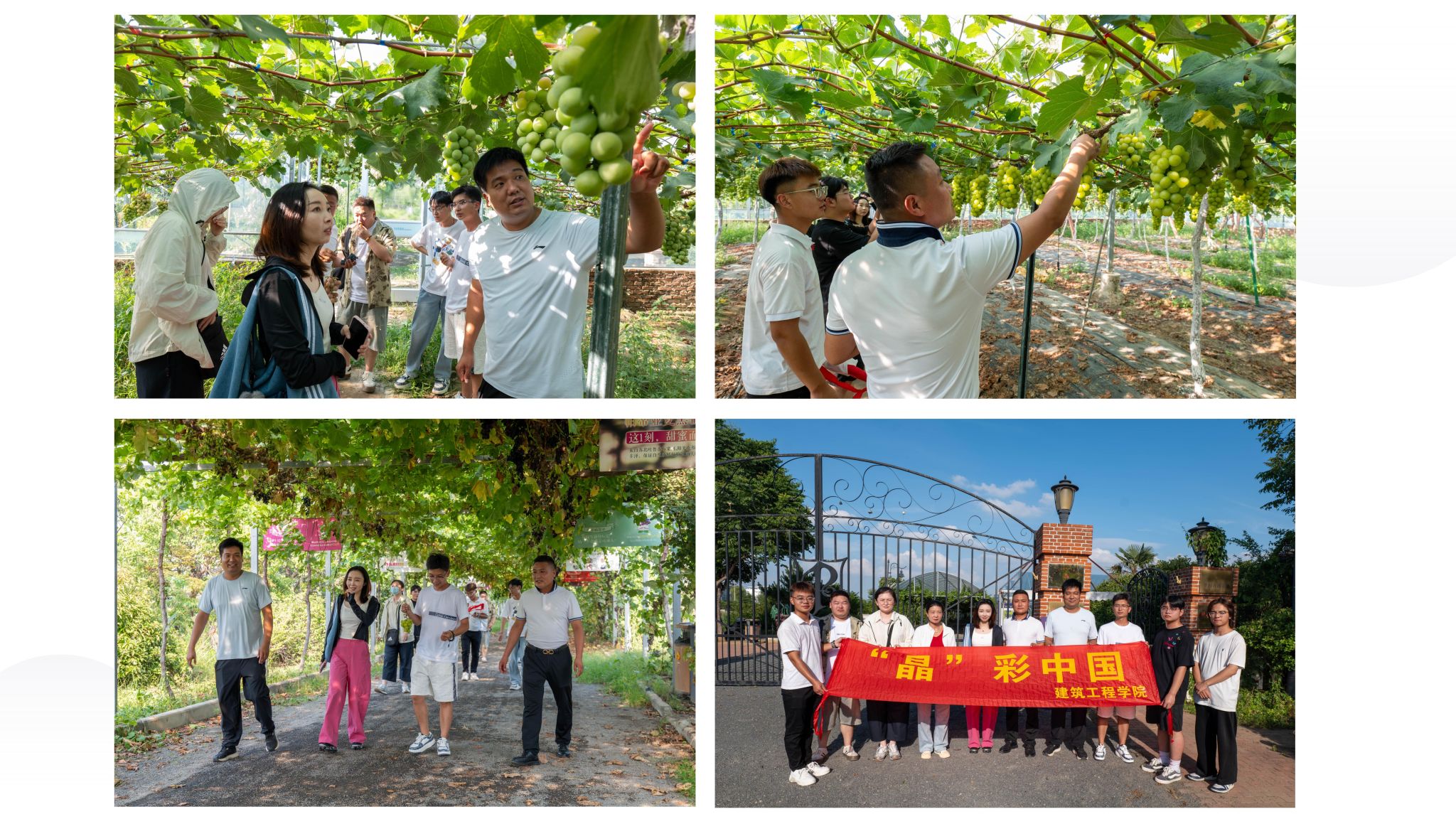 “压架骈枝露颗圆,水精落落照晴轩。”葡萄是连云港的特色水果,也是当地农民的主要收入来源。实践团走进帕蒂亚葡萄庄园,在负责人带领下参观葡萄种植大棚。负责人详细介绍了不同品种的原产地、生长周期、口感特点及市场接受度,并提及虽为国家级示范基地,但在销路拓展及水果运输保鲜方面仍存在难题。实践团随即联系校友张雪,依托其现有运输冷链资源助力解决相关问题,并与农文旅相关机构初步达成“助农认购”合作意向。同时,张雪提议制作葡萄采摘攻略、种植故事等内容,通过直播及短视频等新媒体形式扩大庄园知名度。