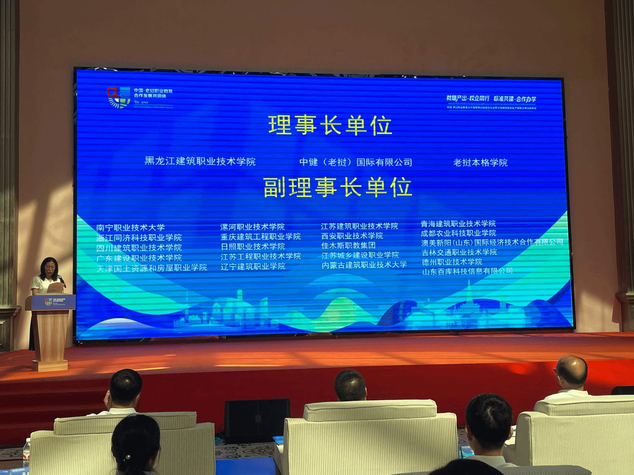 7月22日至24日,由黑龙江建筑职业技术学院、中健(老挝)国际有限公司、老挝本格学院等牵头发起的“中国-老挝职业教育合作发展共同体”成立大会在哈尔滨召开。我校作为联合发起单位当选副理事长单位,选派建筑工程学院建工技术教研室主任袁东进和建筑工程学院质量工程办主任曹伟参加了会议。