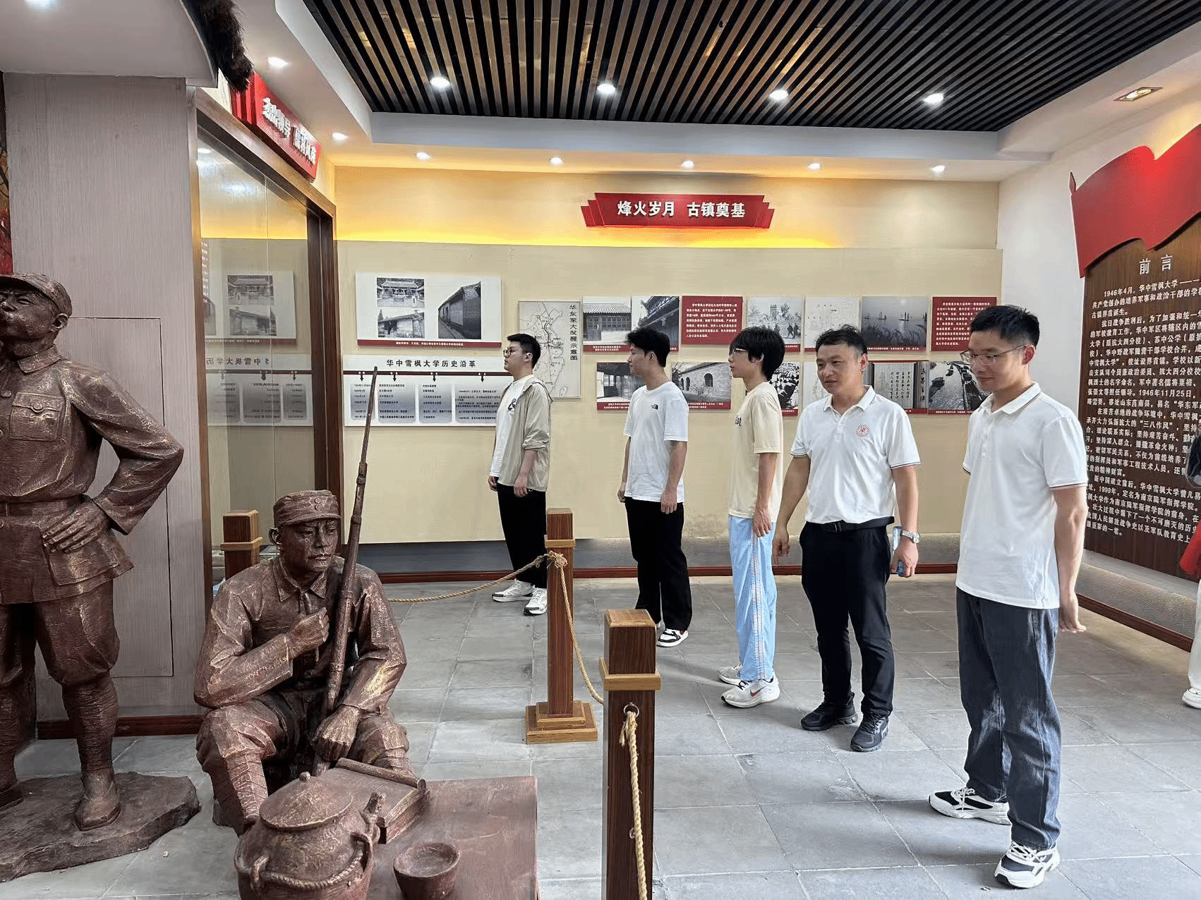 7月26日,实践团首站抵达高邮抗日战争最后一役纪念馆。这座铭刻着民族尊严的圣地,曾是新四军将士浴血奋战之处,也是侵华日军最终放下武器的受降地。馆内,战士的斑驳遗物、泛黄的历史影像、逼真的战斗场景复原,无声诉说着1945年寒冬那场气壮山河的决胜之战。尤为震撼的是缴获的日军装备与受降场景重现——日军在此签署降书,宣告了盘踞中国八年之久的侵略者彻底覆灭。硝烟虽逝,但民族危亡关头迸发的勇气与牺牲精神,如长鸣警钟,提醒青年一代珍视和平,以自强守护家国安宁。这是非常宝贵的抗战精神。