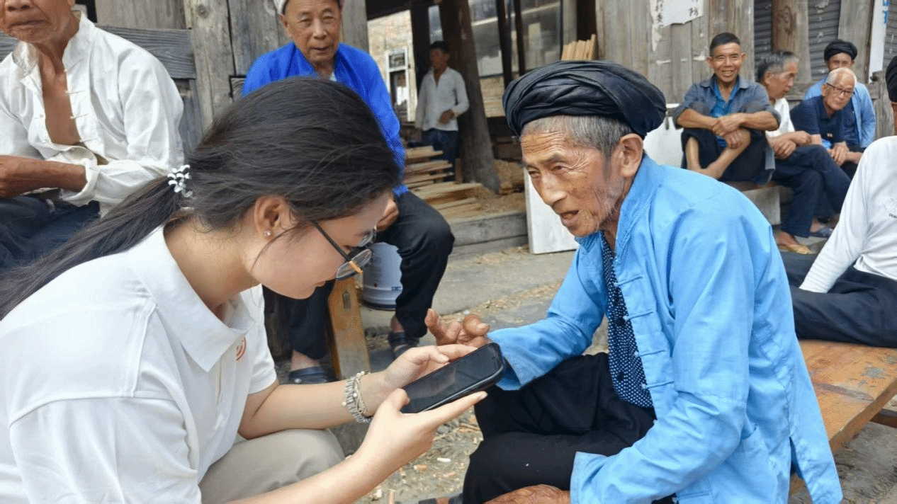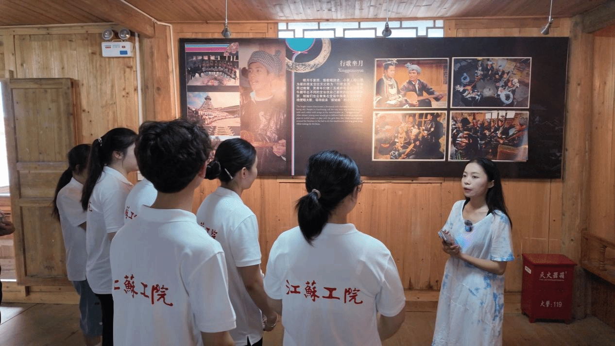 为精准掌握村寨语言使用情况,实践团成员分组深入侗寨,共发放150份推普手册,累计完成有效问卷600多份。在入户走访中,成员们发现村里许多长者主要以侗语沟通,普通话使用率较低,影响对外交流。于是,成员们主动开展面对面教学,“爷爷,打电话时可以说‘请问您有什么事’”,耐心纠正发音,在拉家常中记录语言使用需求,针对性解答智能手机操作、电商平台沟通等场景中的普通话应用问题。小黄村村长吴江林在访谈中感慨道:“我们村以前主要用侗语沟通,50岁以上的人基本都不会说普通话,和村外来的客人难以沟通。”而现在,随着对外沟通桥梁日益畅通,变化早已今非昔比,“现在占里村的孩子还到咱们村上学呢!”说这话时,他眼中闪烁着自豪的光芒。随后,实践团指导老师李慧娴与村长共同为江苏工程职业技术学院大学生社会实践基地揭牌,为长效推普工作搭建起稳固平台。