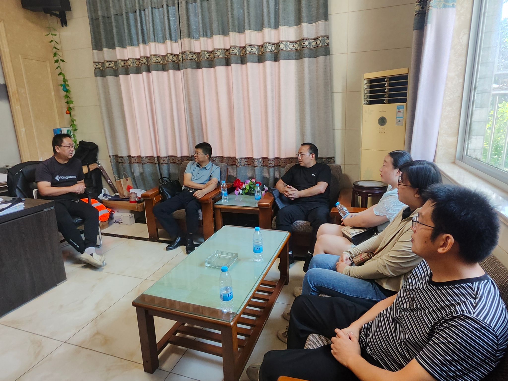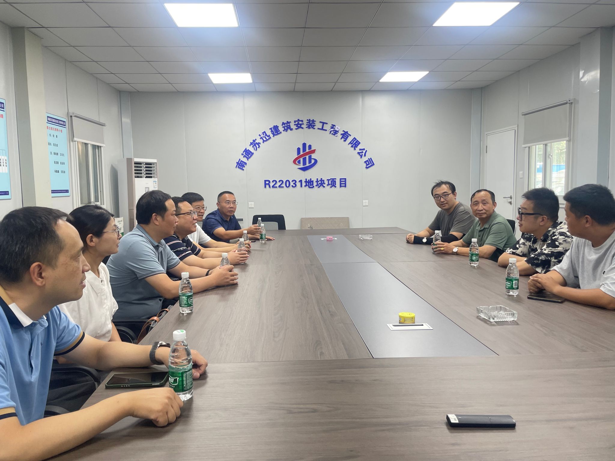在南通苏迅建筑安装工程有限公司承建的R22031地块项目部,一行人看望了酷暑中坚守一线岗位的杜永健博士。苏迅安装公司副总张强等接待了来访人员。项目技术负责人吴汉成介绍了项目基本情况,对杜博士每天到岗巡查现场,深入一线的工作态度表示高度赞许。张晓冬对南通苏迅安装公司长期以来对学校工作的支持表示感谢,询问了杜永健老师在项目一线的工作、生活情况,鼓励其抓住机遇、主动沉淀,为今后的教学科研工作筑牢基础。杜永健向来访人员汇报了项目的进展及已取得的相关成果,表示要主动融入、不断拓展,在工程一线实践中产出优质成果。