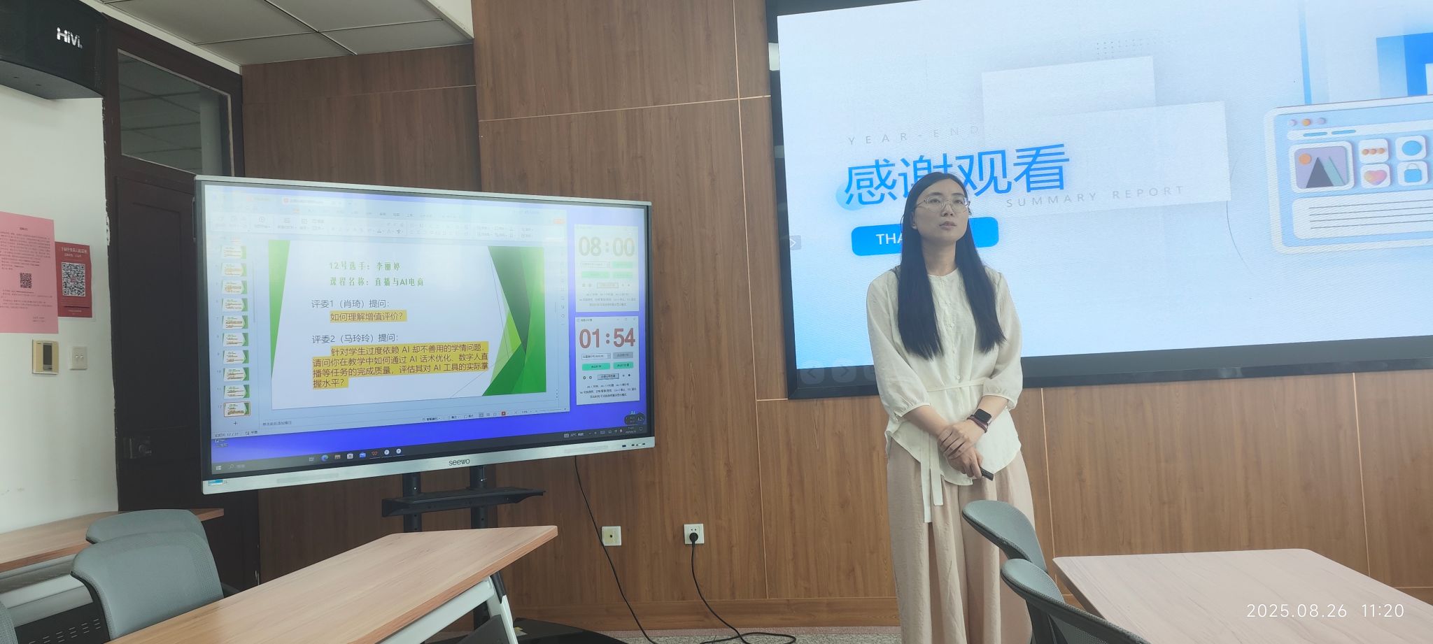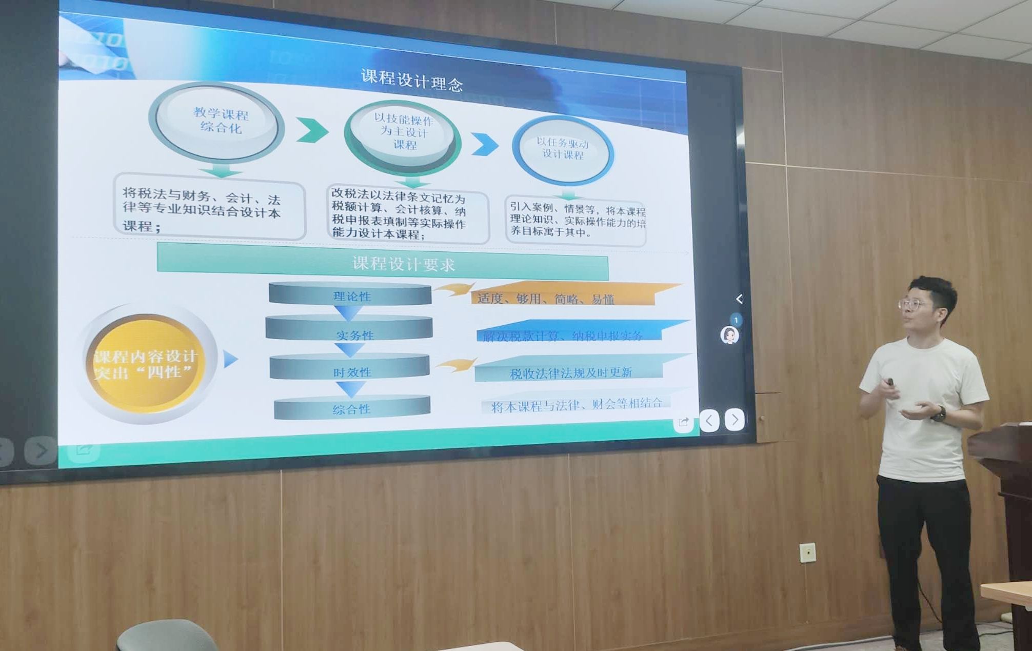 此次竞赛严格对标教学能力比赛考核内容,同时增加了数字化技术应用的实践与规划,以检验七月份全员在西交利物浦大学进行数字化赋能教学培训的学习效果。参赛教师围绕所授一门课程,展示六个部分内容:课程定位与学情分析、教学目标与内容重构、教学方法与手段、教学过程设计、教学评价、 教学成效与反思。参赛教师们精心准备,从课程定位出发,通过行业案例的精准嵌入、学情数据的动态分析,明确教学目标,重构教学内容,强化课程与职业需求的衔接性,系统呈现了教学设计的逻辑性与课堂实践的创造性。在答辩环节,参赛教师们沉着应对评委提出的问题,充分展现出深厚的专业素养与出色的临场应变能力。点评环节中,评委们针对参赛教师在说课过程以及教学设计中所暴露出的不足,给出了极具针对性与建设性的改进建议。