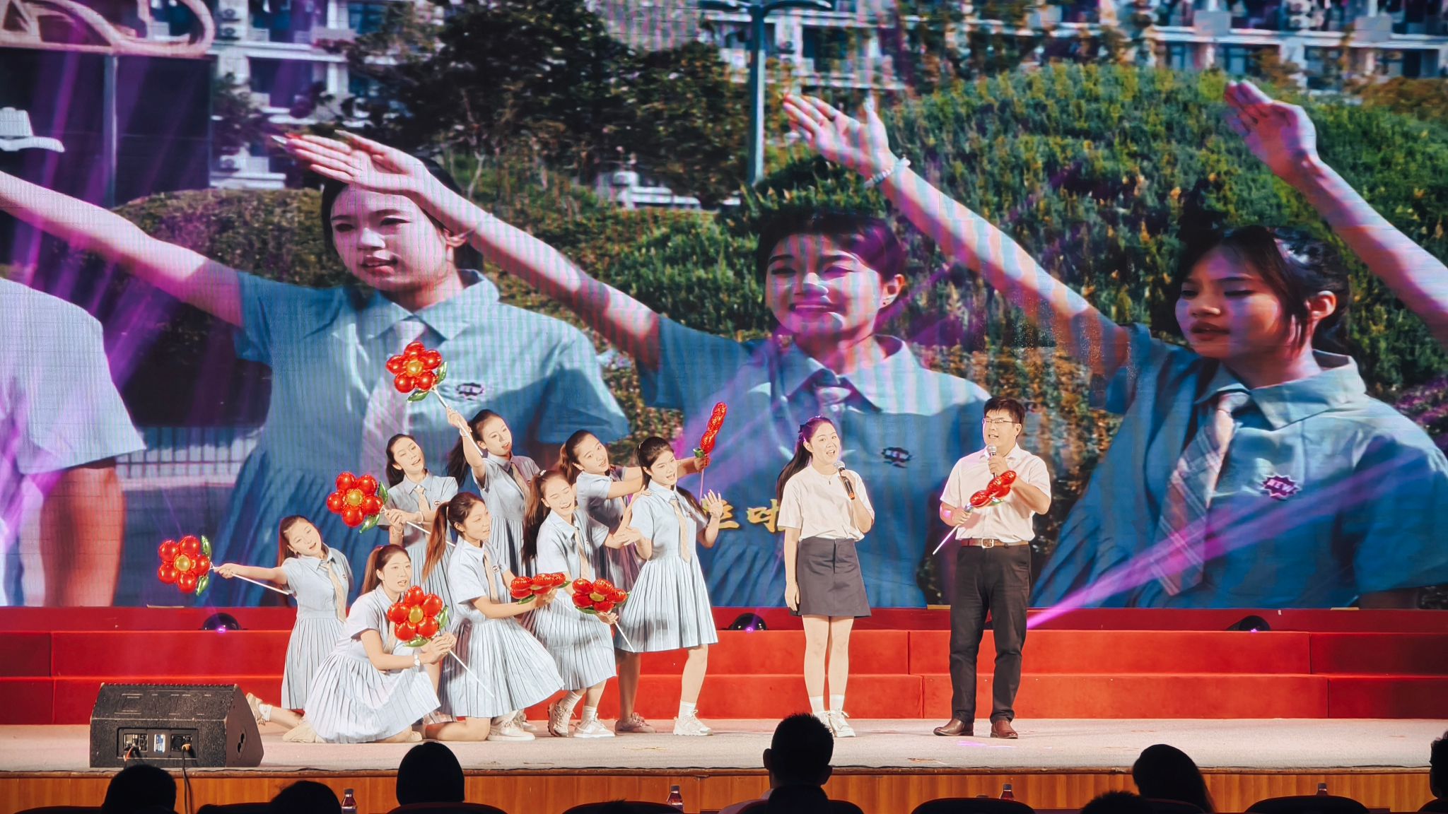 “白色玉兰开得那么皎洁,我一直在为你祈愿……” 悠扬婉转的旋律在学校大礼堂内缓缓流淌,经济管理学院学生深情参与了学校师生联袂演绎的原创曲目《老师,您听我说》。台上,学生们身着整齐着装,眼神坚定而真挚,手势整齐划一,用饱含情感的歌声传递对老师的敬意;台下,老师们端坐聆听,不自觉地随着节奏轻拍手掌,不少老师面露动容之色,过往师生相处的点滴片段在脑海中浮现。演出过程中,热烈的氛围汇聚成一片“声浪海洋”,将活动的温馨基调推向高潮。