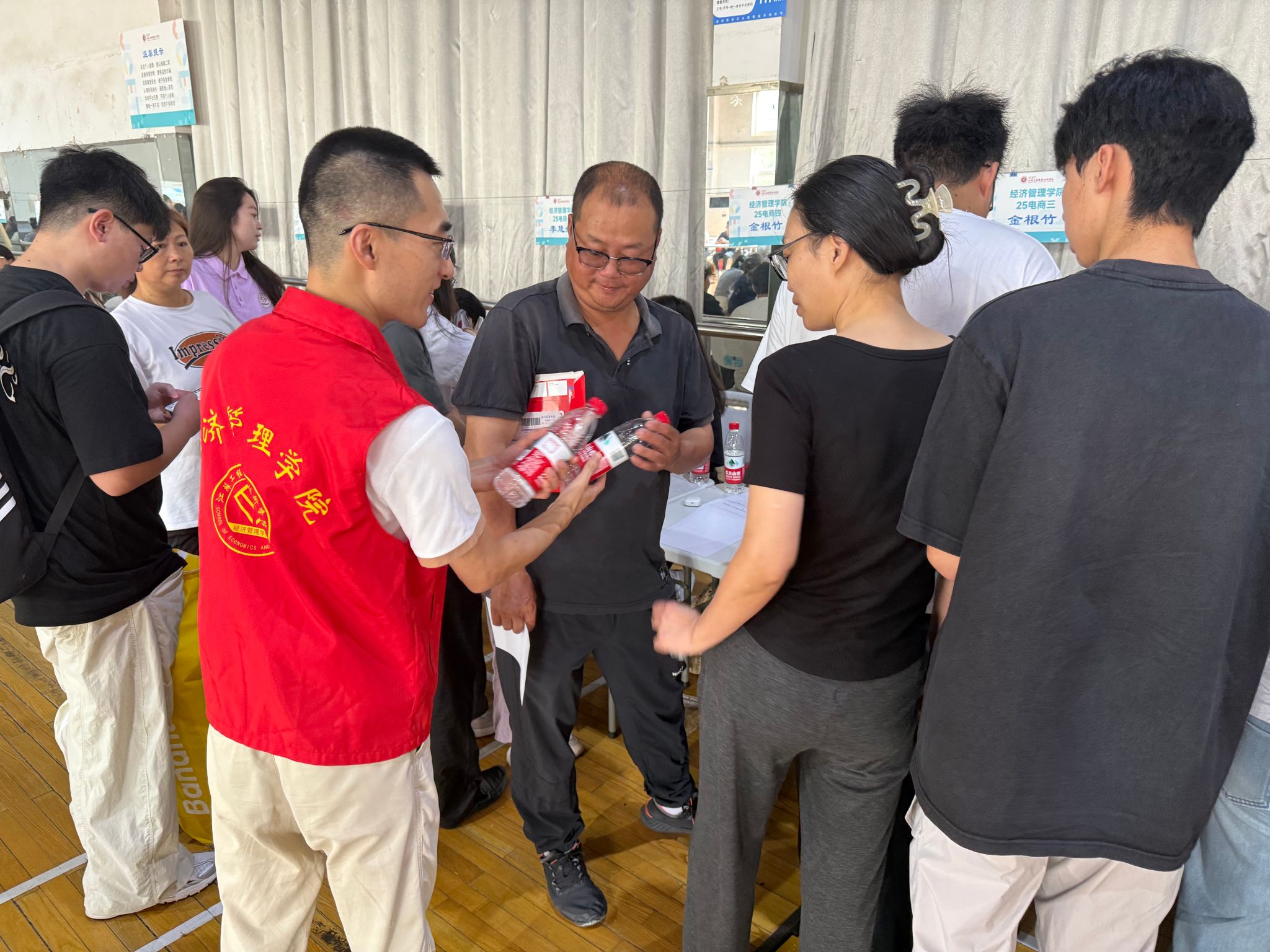 志愿服务献真情,助力迎新勇担当。徐甜甜、周欢、白雪三位教师作为迎新志愿者参与到经济管理学院的新生报到接待服务工作中,他们在接待点和新生报到处,引导新生完成报到流程,协助学院做好信息核对、材料分发。在现场主动为新生和家长答疑解惑,传递学校大家庭的温暖,帮助新生缓解初入大学的陌生感与焦虑感。同时,老师们还发挥理论素养和沟通特长,在迎新间隙适时开展微宣讲、微交流,引导新生初步认识大学使命、树立正确价值观。老师们还与经济管理学院党政领导一同深入宿舍,和结对班主任一起走访慰问了新生,勉励他们注重学习能力的培养,积极参加校园活动,丰富社会实践,积极投身强国有我的现代化建设中。