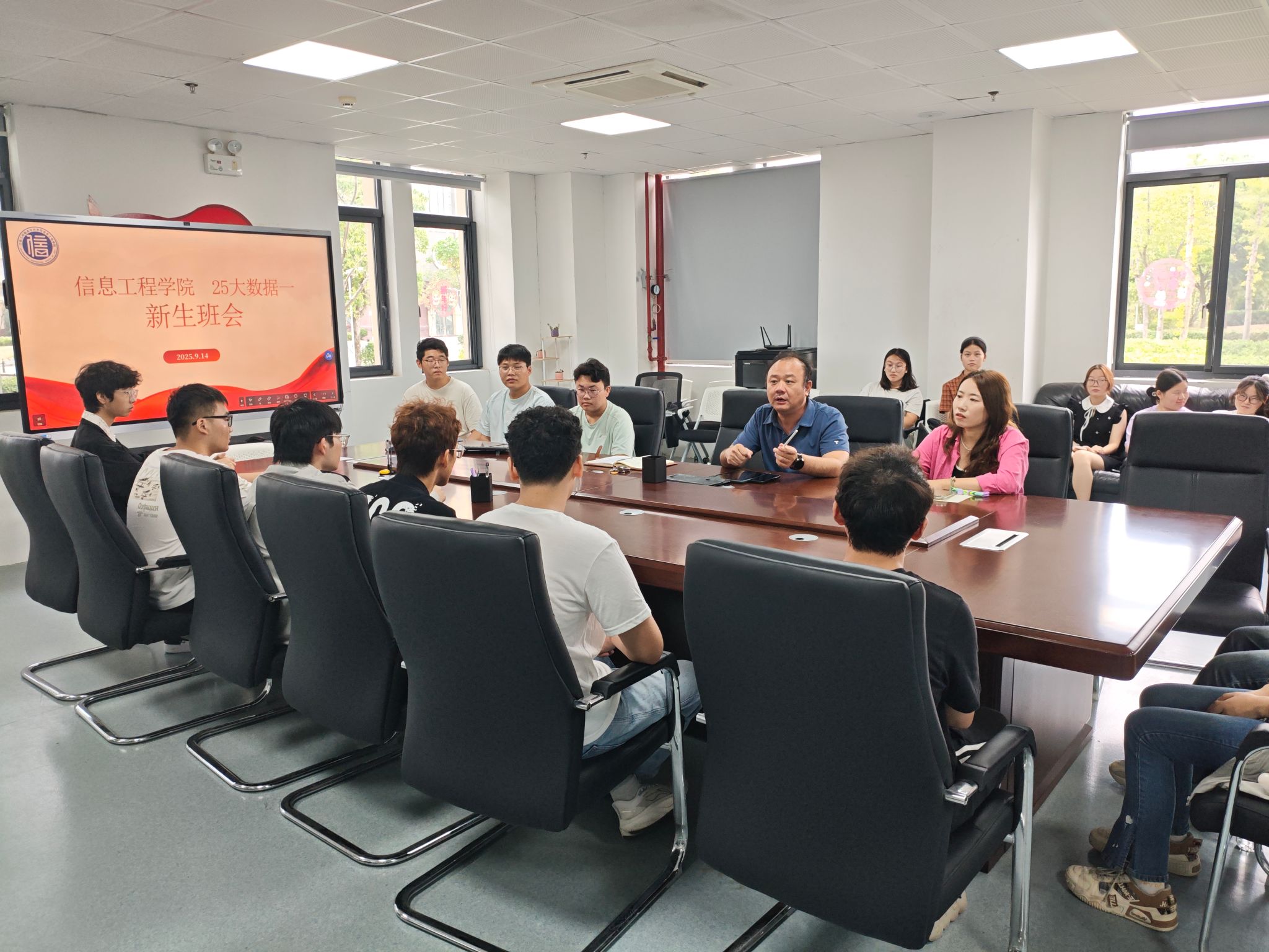 启智润心汇合力,班会共话青春梦。马克思主义学院党总支书记钱晋等老师负责结对的是信息工程学院,新生报到当天,他们积极联系有关班级了解新生报到情况,协助做好学情分析,确保新生报到工作顺利完成。钱晋还参加了25级大数据班(一)的新生班会课,他从“增长知识”“开拓视野”“明确方向”三个方面与新生们畅谈了当代青年的使命与责任,用身边典型和榜样事迹激励大家加强学习,给新生们带去了一场别开生面的思政“微课”。