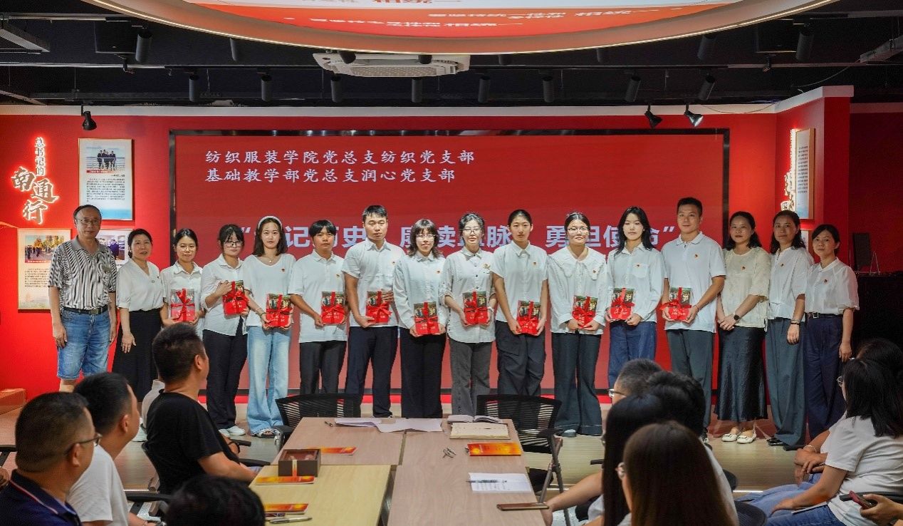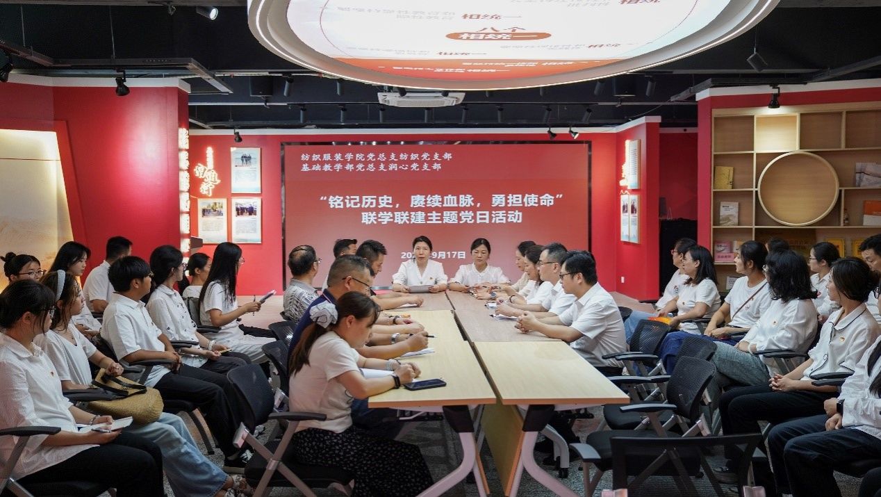 9月17日,“铭记历史,赓续血脉,勇担使命”主题党日活动在校践悟馆举行,本次活动由纺织服装学院纺织党支部与基础教学部润心党支部以联学联建形式开展。活动由纺织党支部书记隋全侠主持,双方党支部全体党员、学生党员参加了此次活动。