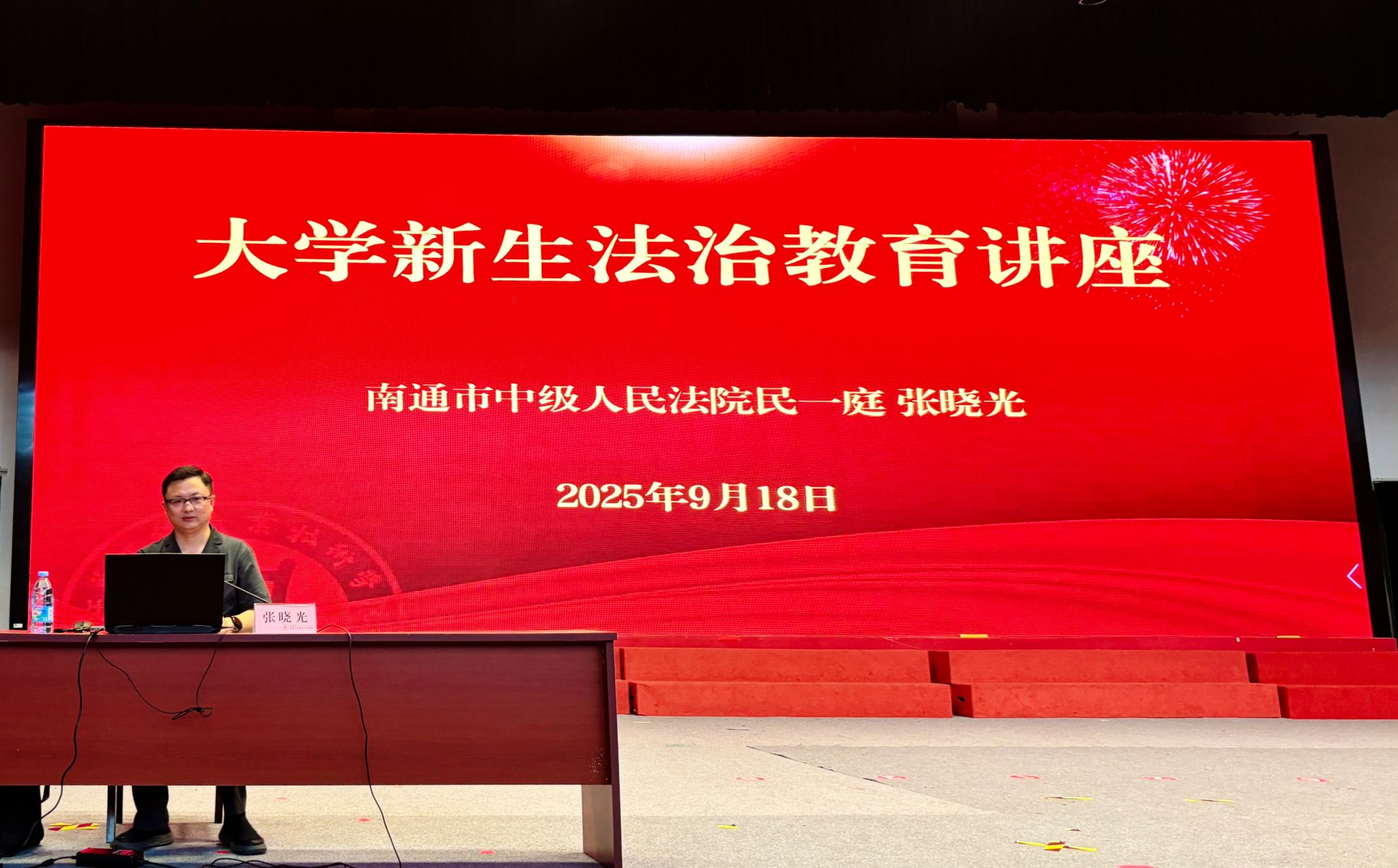 为深入学习贯彻《中华人民共和国法治宣传教育法》,落实《省教育厅办公室关于开展第七届全省青少年法治宣传教育周活动的通知》要求,强化2025级新生法治观念,9月16日—18日,校法治工作办公室特邀请南通市中级人民法院民一庭副庭长张晓光与濠阳律师事务所党支部书记、专职律师蔡宗佑,在崇川、海门两校区开展新生法治教育讲座,为新生扣好大学“法治第一粒扣子”。