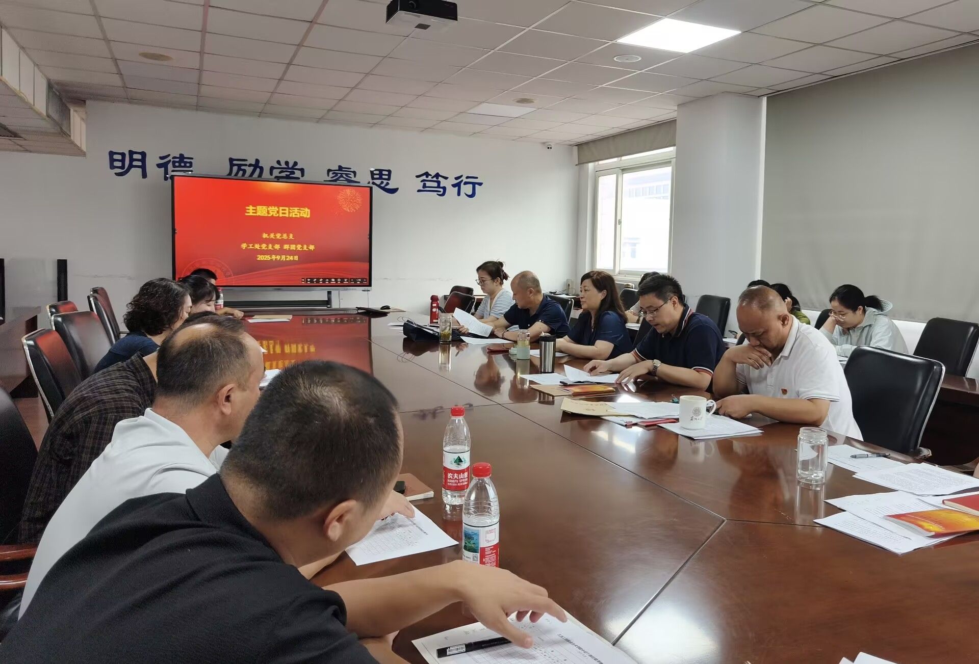 支部在开展集中学习研讨时,严格落实“第一议题”制度,组织学习了习近平总书记在中国人民抗日战争暨世界反法西斯战争胜利80周年纪念活动上的重要讲话。与会同志结合观看阅兵和参观展览的切身感受,展开了热烈讨论。大家深刻认识到,必须始终铭记历史、珍爱和平,大力弘扬爱国主义精神和伟大抗战精神,并将其落实到具体行动中,为实现民族复兴贡献力量。会上专题学习了习近平总书记关于做好新时代党的统一战线工作的重要思想。随后,与会同志集中学习了《中国共产党章程》中关于党的干部、党的纪律、党的纪律检查机关等重要章节,进一步明确了党员的义务、干部的标准和纪律的要求。