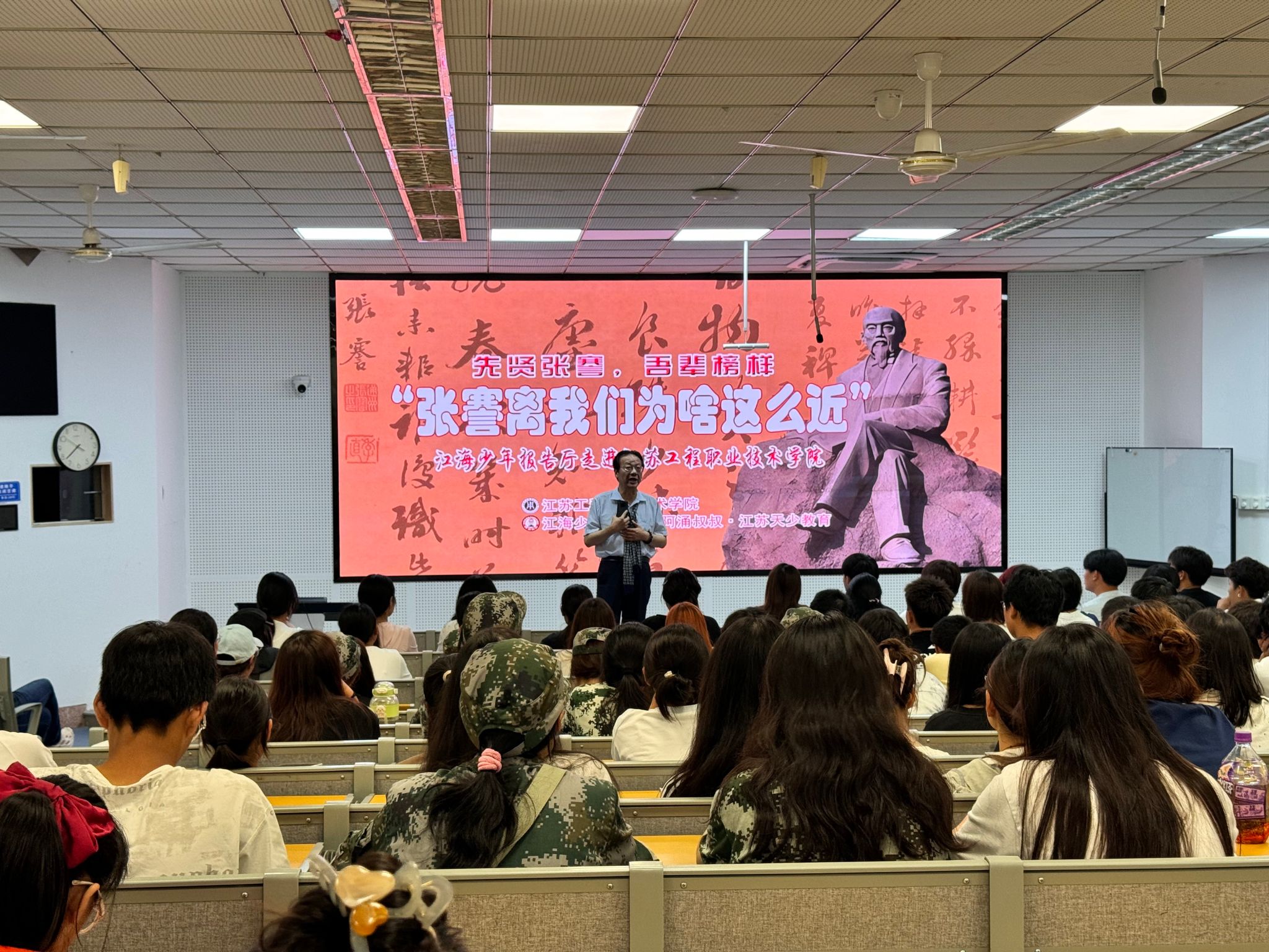 宣讲中,江海少年通讯社记者部部长姚天乐以《张謇的善言善行对青少年的启示》为题,讲述了张謇先生的公益精神与社会担当;盲童宣讲员陈梓奕围绕《张謇的教育思想对青少年有哪些影响》,分享了教育平等与多元成长的思考;小记者凌睿成在《张謇的童年和我的童年》中,联系自身与先贤的成长经历,激发共鸣;采编学习部部长陆以蒙则以《张謇的创新精神与当代青少年成长》为题,倡导青少年勇于探索、积极创新。四位少年宣讲员用真挚的语言、独特的视角,诠释了张謇精神在新时代的意义。最后,体验教育专家阿涌叔叔作了精彩讲座,鼓励青少年以张謇为榜样,坚定理想信念,积极投身社会实践,争做有理想、有本领、有担当的时代新人。