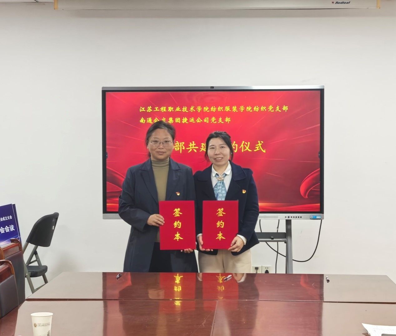 11月19日上午,纺织党支部与南通公交集团捷运公司党支部开展党建联建活动,双方党支部书记阮飞与隋全侠签署了《党支部合作共建协议》。纺织服装学院党总支书记夏爱萍、副书记刘桂阳、双方党支部支委及部分党员参加活动。