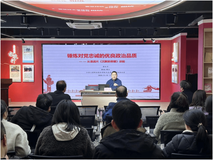 11月19日下午,马克思主义学院邀请江苏商贸职业学院马院教授、科产处处长黄红平走进“新思想践悟馆”,为学院全体党员作了题为“锤炼对党忠诚的优良政治品质”的专题党课。学院党政班子参加讲座,学院党总支书记钱晋主持活动。