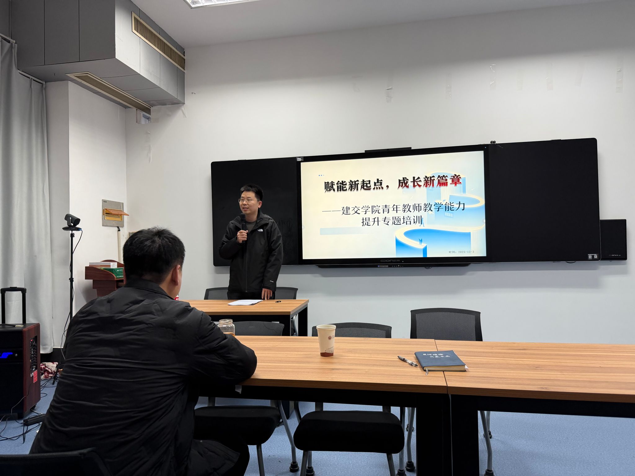 12月3日下午,建筑与交通工程学院在强毅楼智慧教室举办“青年教师教学能力提升”专题培训。教务处副处长窦贤振与学院教师谭启颖担任主讲嘉宾,院长王斯海、副院长袁东进、学院近五年新入职教师参与本次培训。