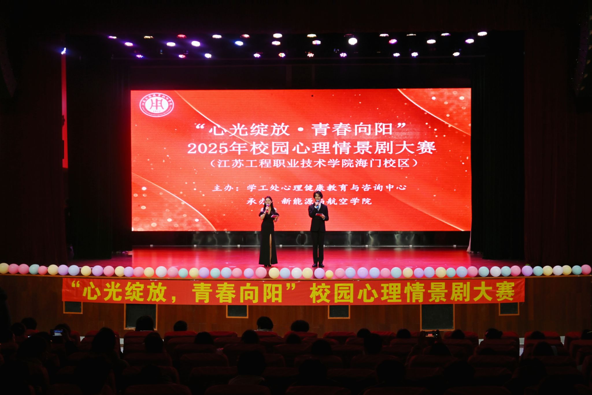 12月11日,我校海门校区在海门800人报告厅举办了2025年度“心光绽放·青春向阳”校园心理情景剧大赛。本次大赛由学工处心理健康教育与咨询中心主办,新能源与航空学院承办。新能源与航空学院党总支书记范晔、陈益飞,党政办公室李荆树,学工处教育管理科王敏,学校心理中心杨婷、沈晓薇、陈加欣以及各学院辅导员代表参加了本次比赛。