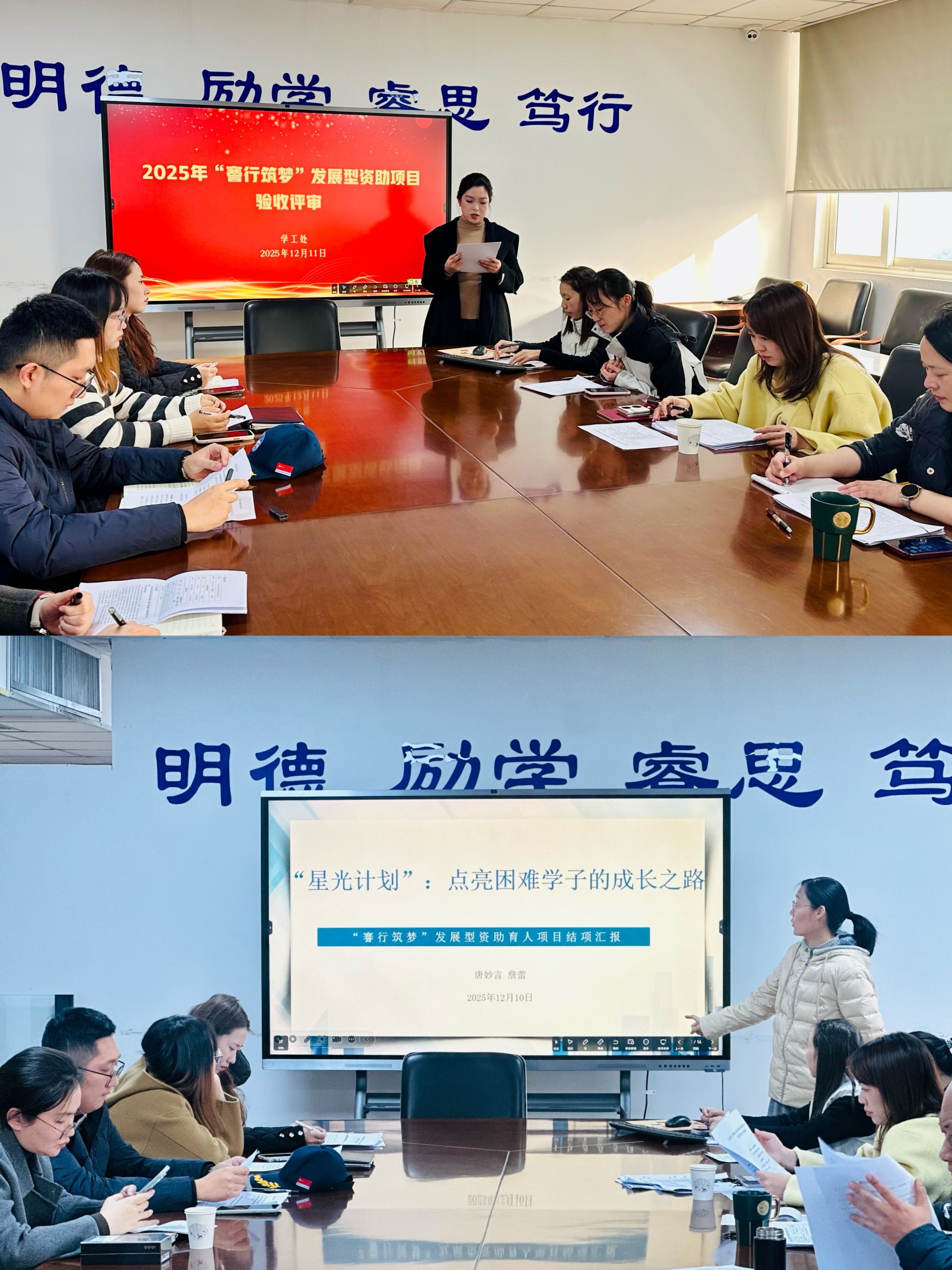 12月11日下午,“謇行筑梦”发展型资助育人项目结项答辩会在崇謇楼601会议室举行。11个项目团队聚焦“为学生成长赋能”,生动展现了团队如何结合学院专业特色,针对不同困难学生群体实际需求,在思想引领、学业帮扶、能力锻造、榜样树立等方面精准施策,形成了一批可复制、可推广的发展型资助育人载体和工作经验,交出了一份暖心的年度答卷。