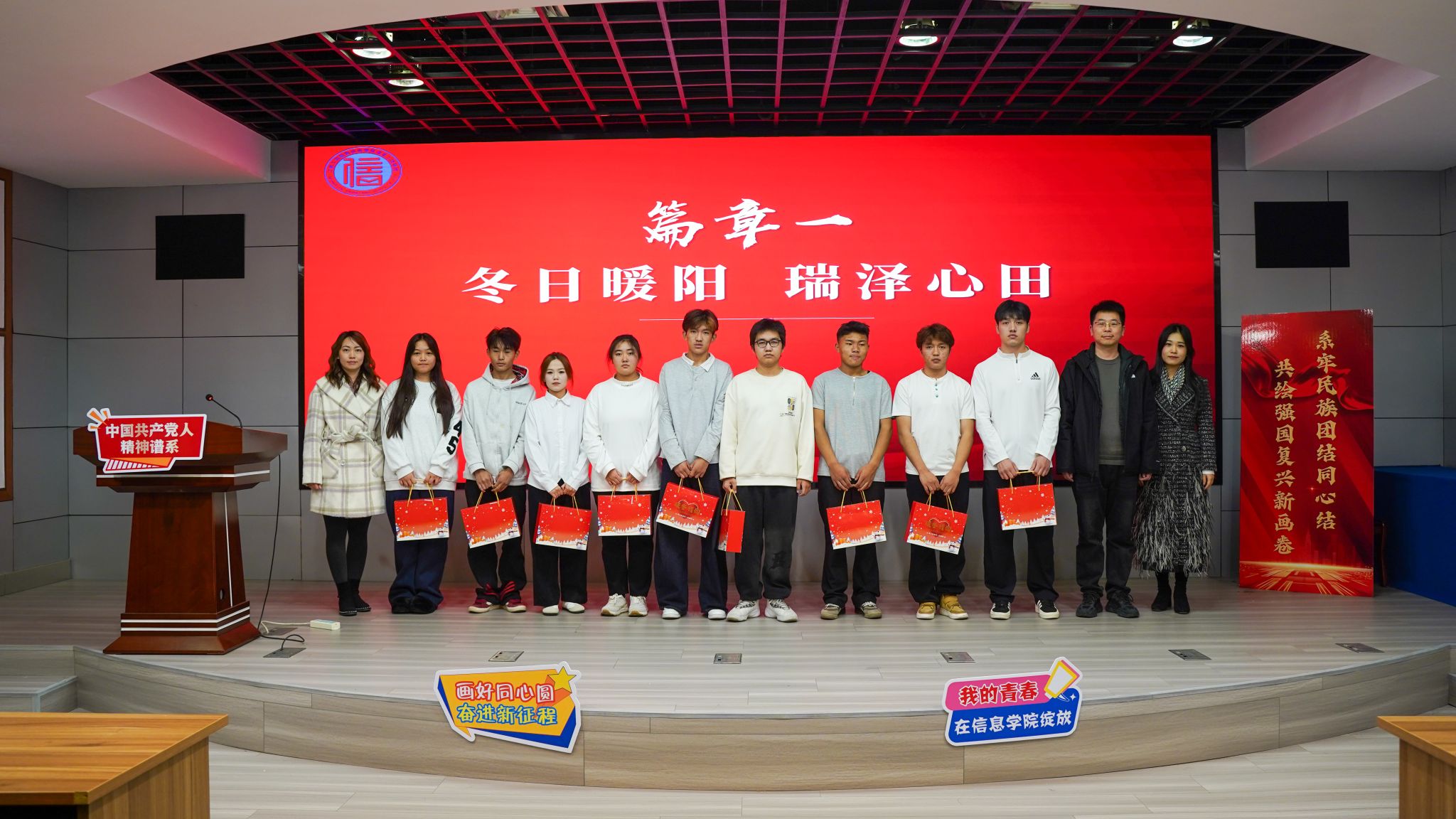 活动在温情洋溢的“暖冬行动”中拉开帷幕,学院为民族学生送上精心准备的暖心物资。随后的表彰仪式上,品学兼优的民族学生荣获嘉奖,他们勤奋进取的精神风貌和优异成绩,生动诠释了新时代青年“奋斗正当时”的青春风采。