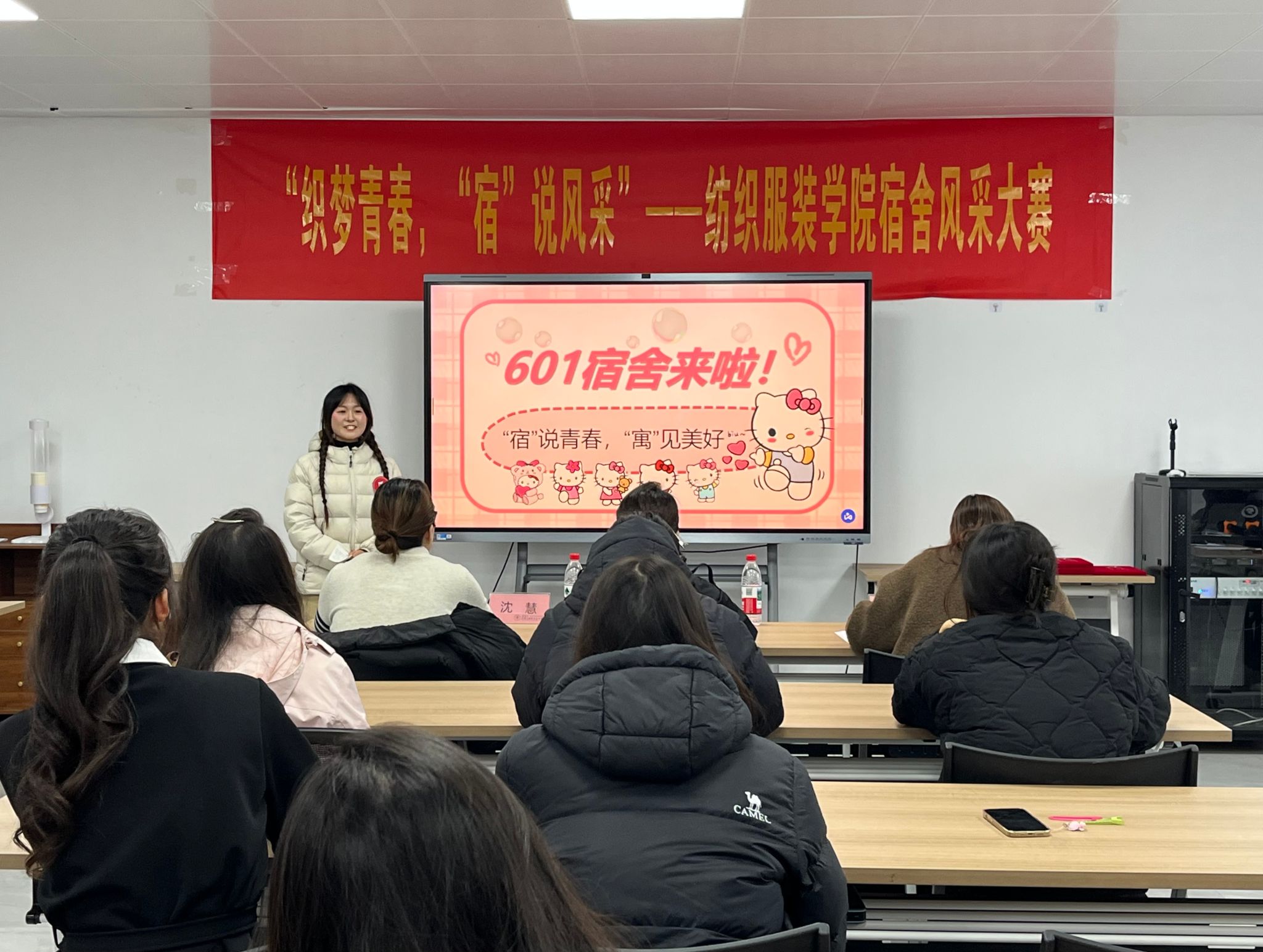 12月17日下午,纺织服装学院在学校“一站式”学生社区举办“织梦青春,‘宿’说风采”宿舍风采大赛决赛。校学生社区管理与服务中心主任许晓月、纺织服装学院专职辅导员俞晓霞、沈慧担任评委。学院30余位宿舍代表参加了活动。